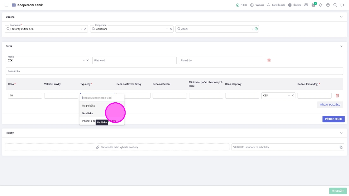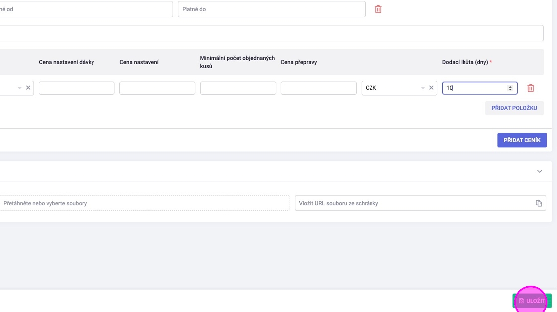 V případě, že chcete specifikovat měnu či platnost ceníku, vyplňte patřičná pole.