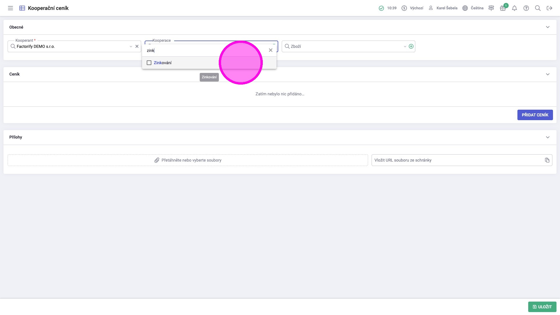 Tip: Dokončením procesu vznikne kooperační ceník. Ten bude k dispozici při zpracovávání pracovních postupů zboží a bude se automaticky doplňovat do kooperačních objednávek.
