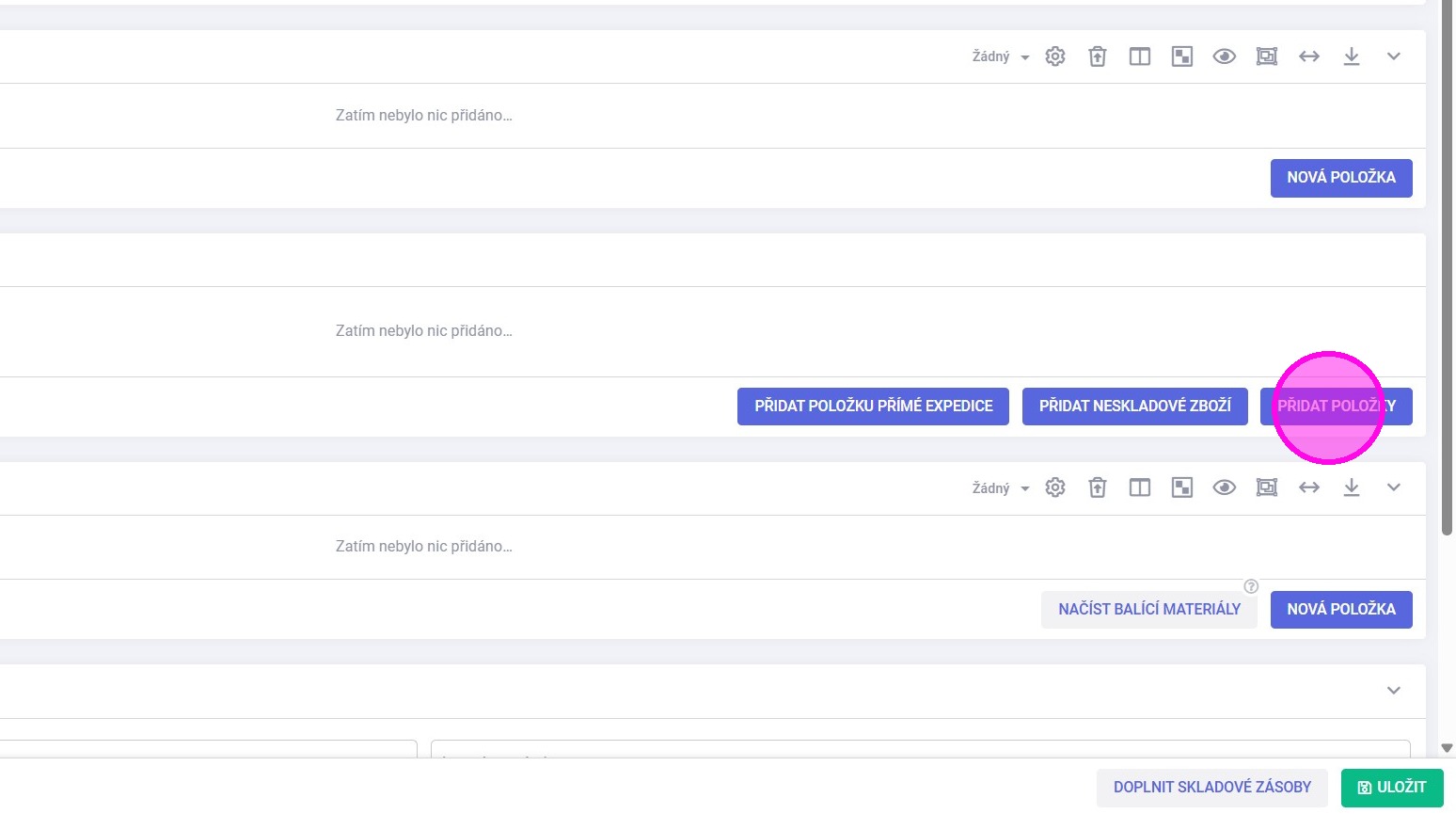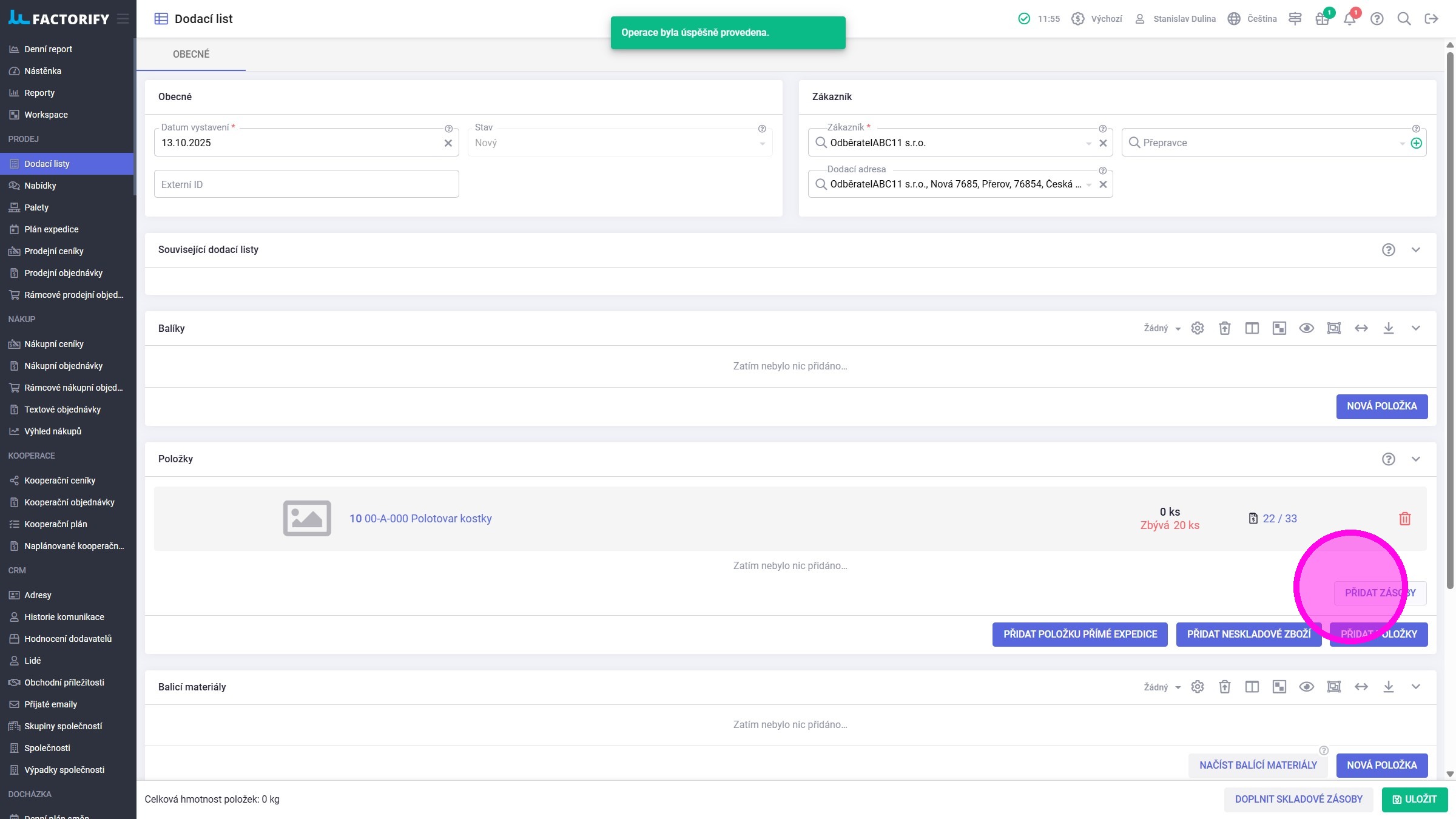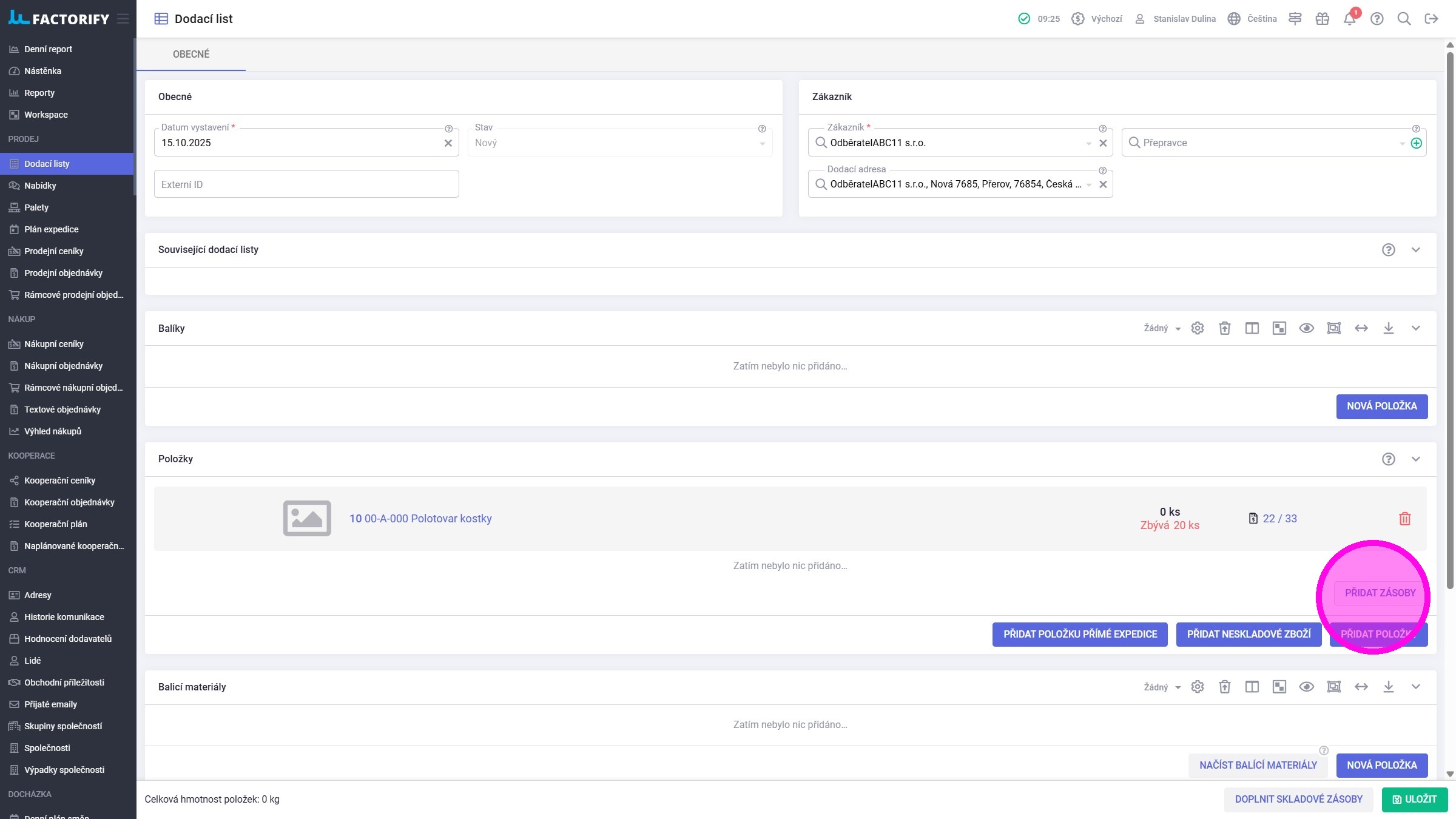 2. Kliknout na tlačítko "Přidat na dodací list".