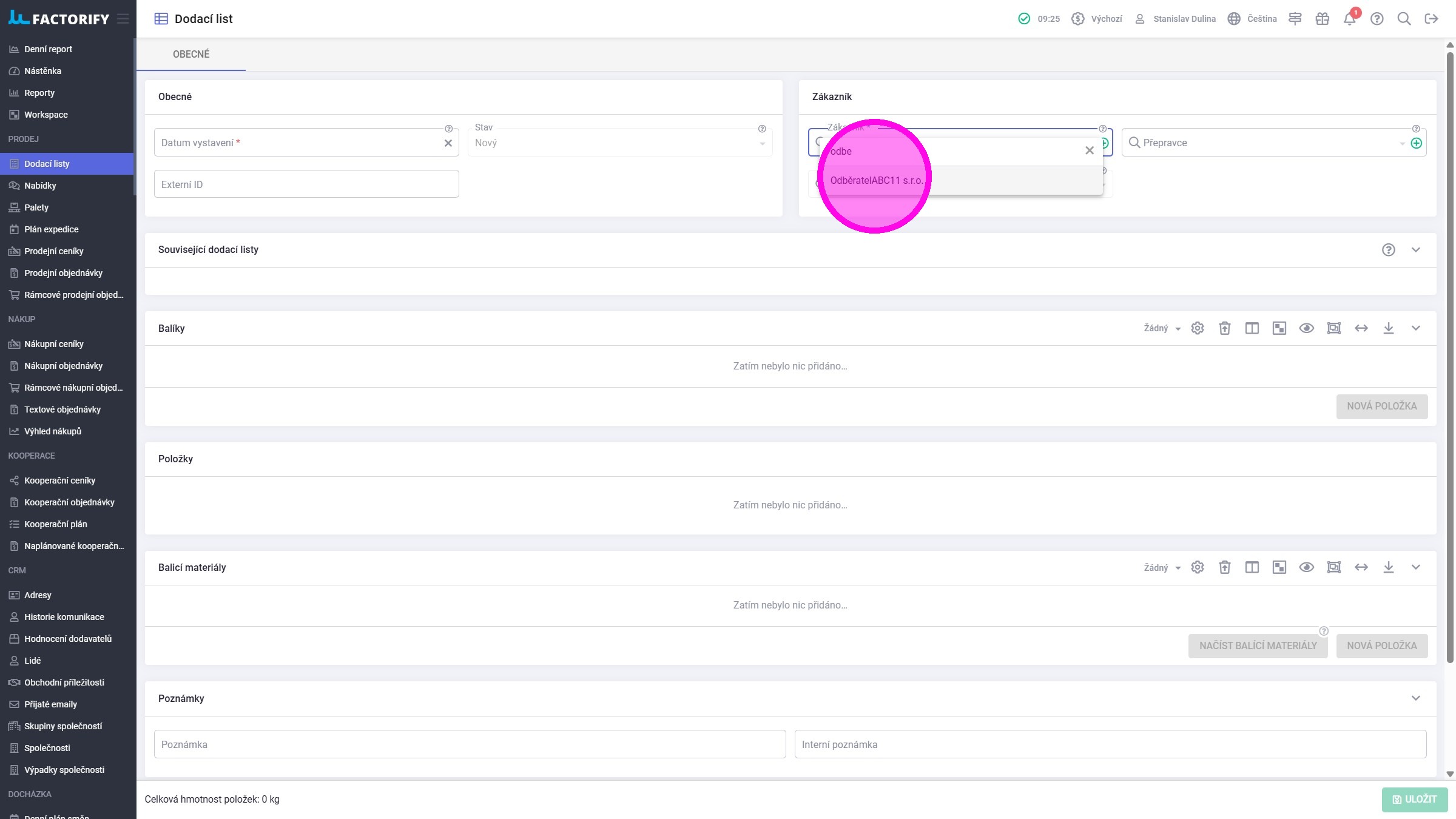 Tip: Na detailu dodacího listu je možné zadat i obalový materiál nebo balíky, do kterých jsou položky dodacího listu uloženy.