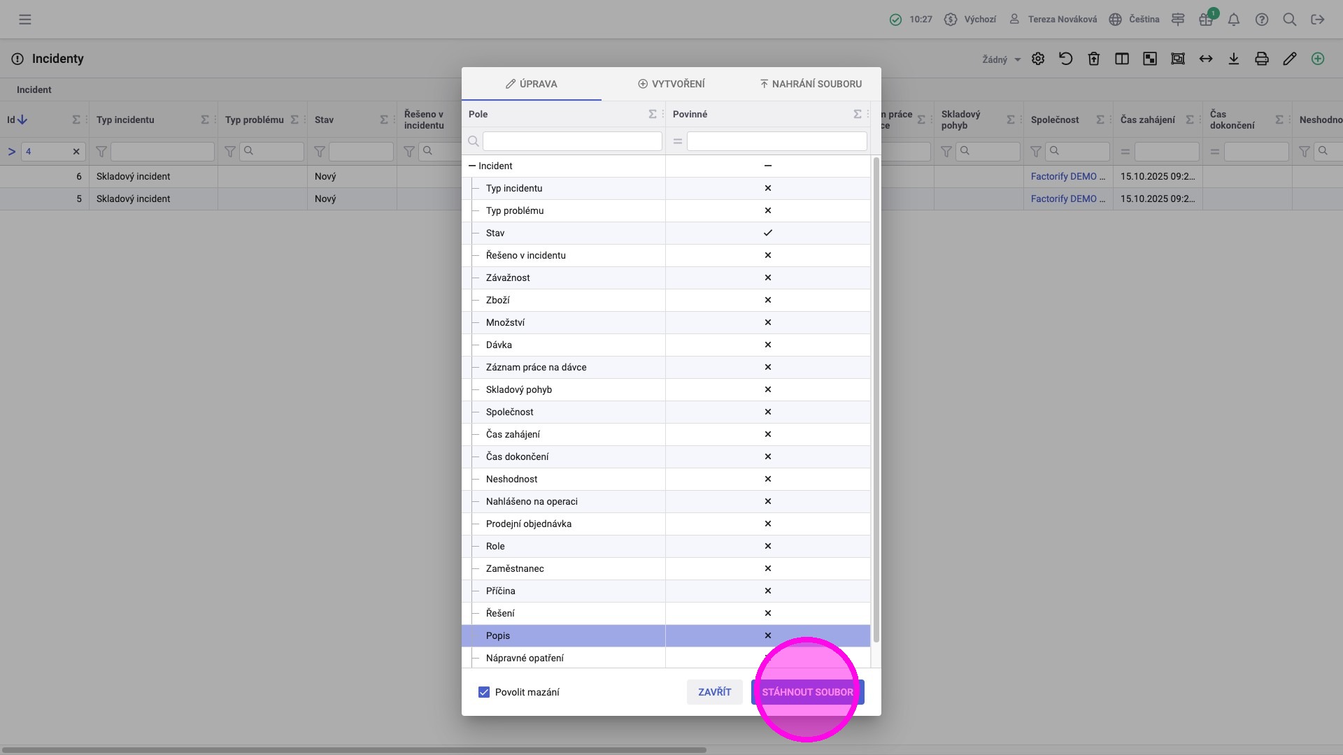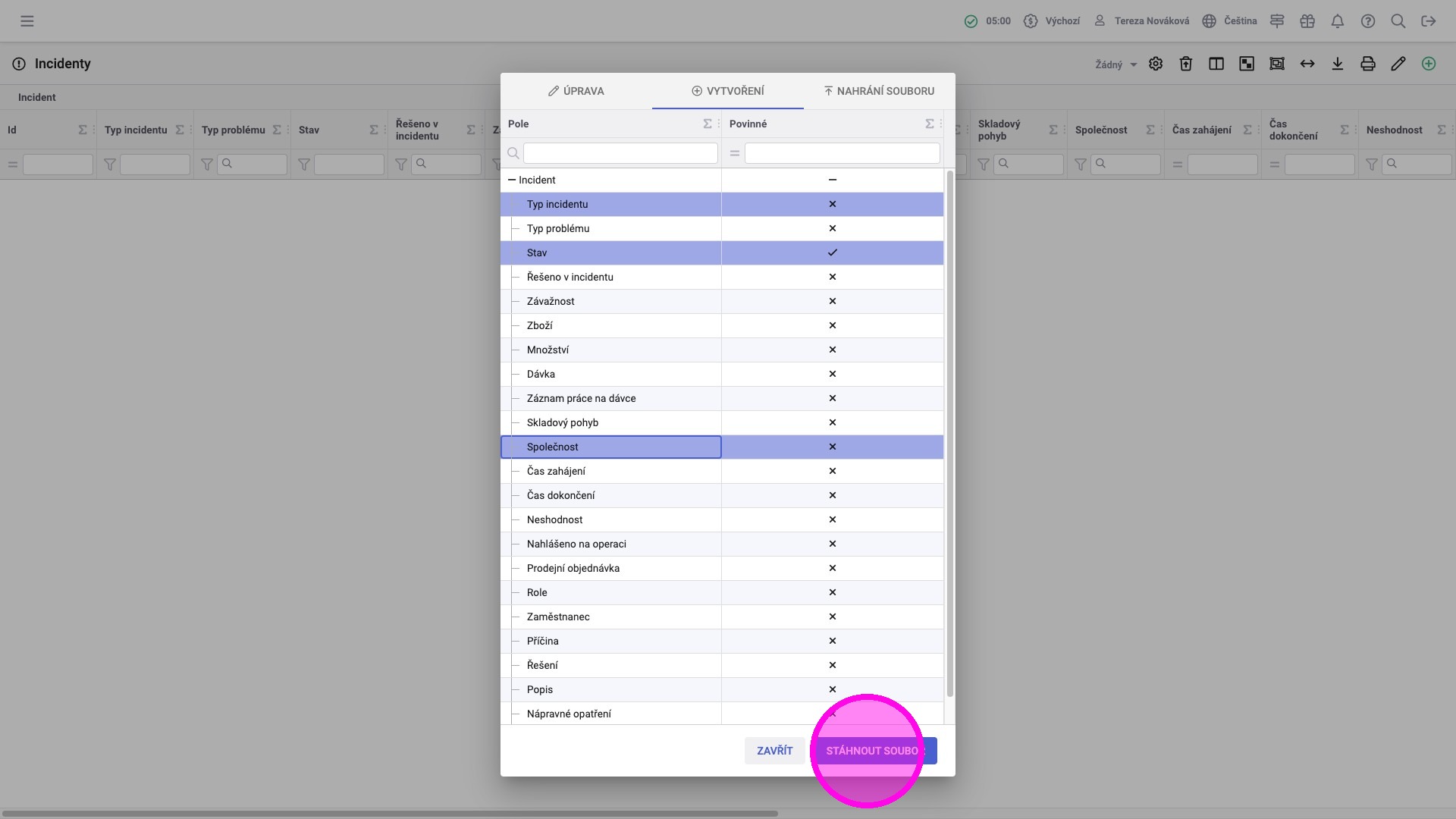 5. Kliknout na "Stáhnout soubor".