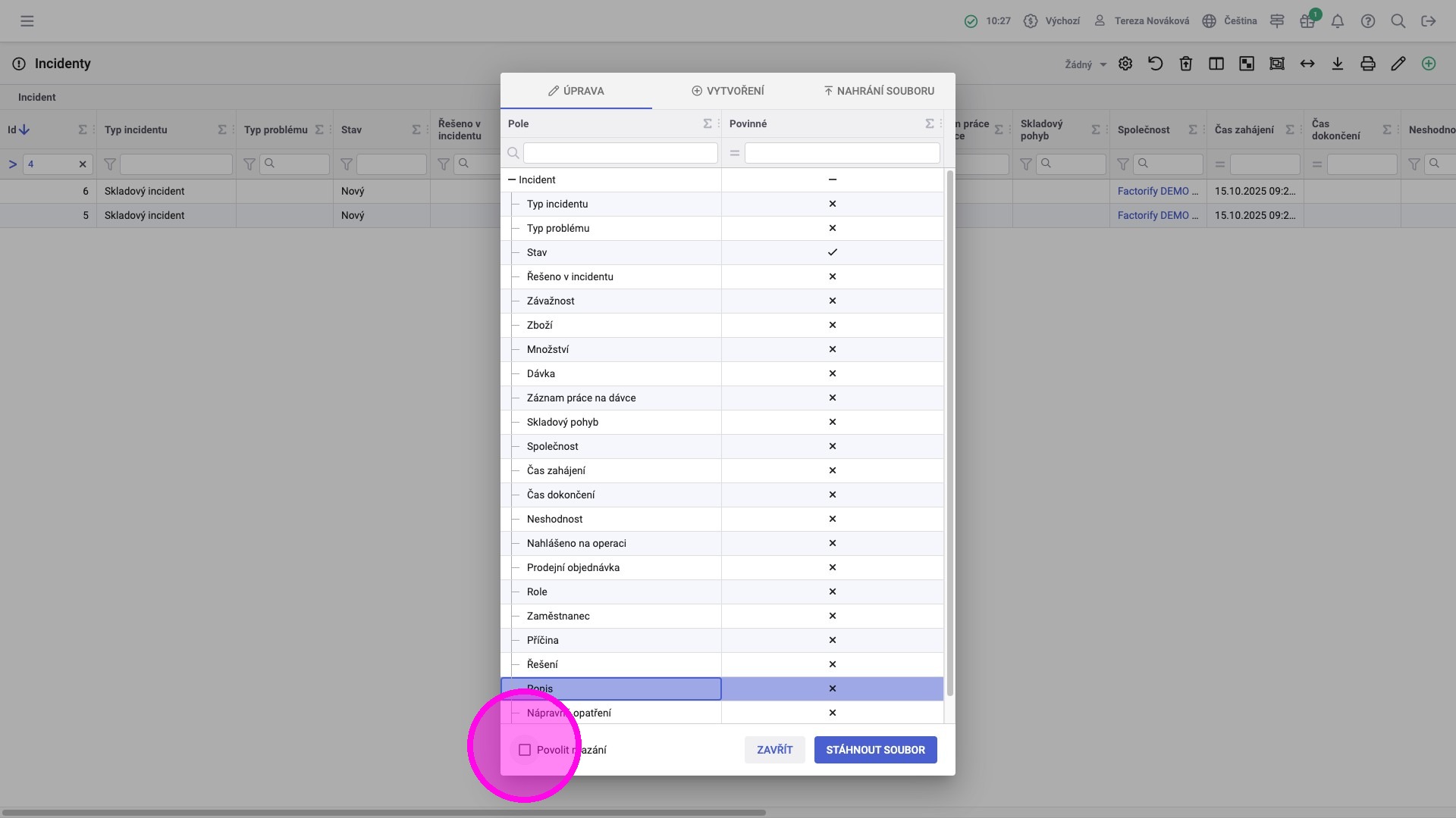 Tip: Pokud bude pole ponecháno prázdné, prázdná hodnota se propíše při zpětném nahrání souboru.