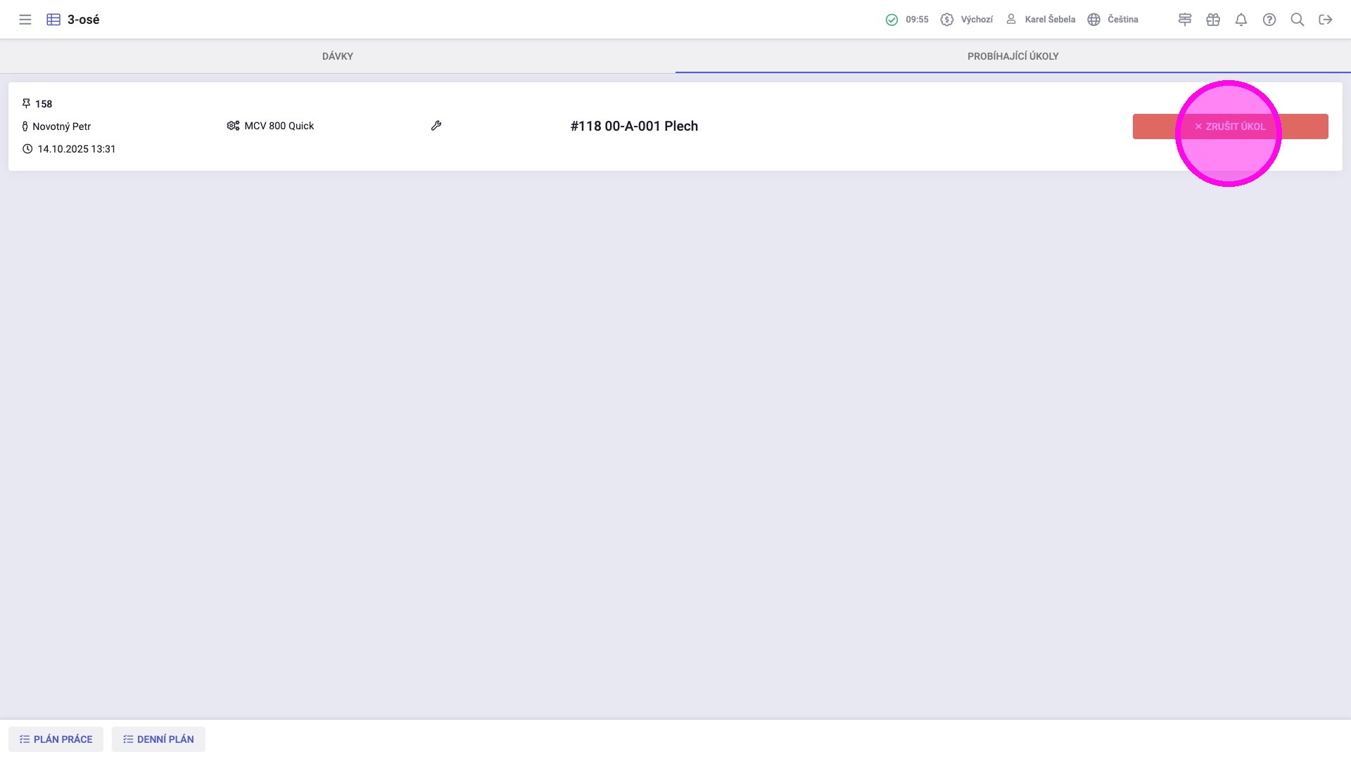 Na obrazovce vidíme všechny dávky, které jsou nyní na tomto pracovišti. Pořadí dávek odpovídá jejich prioritě.