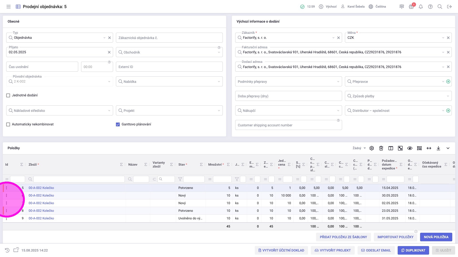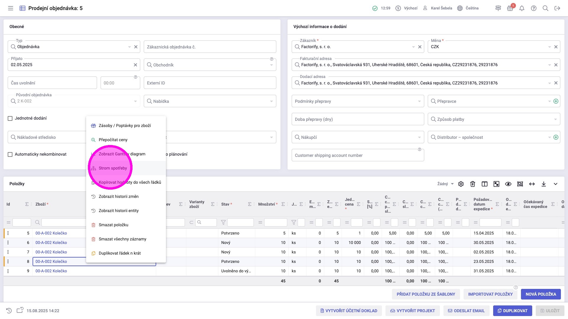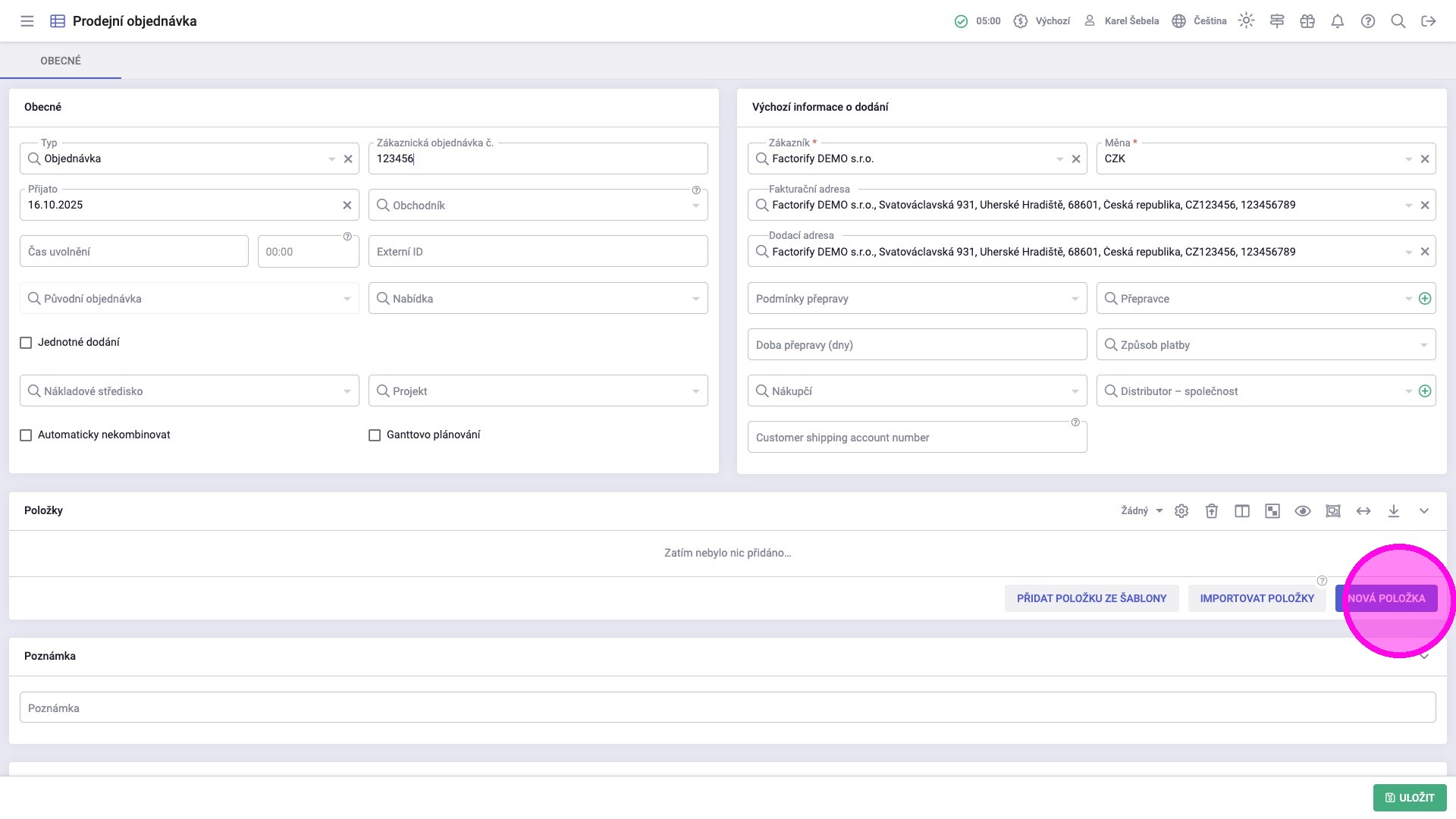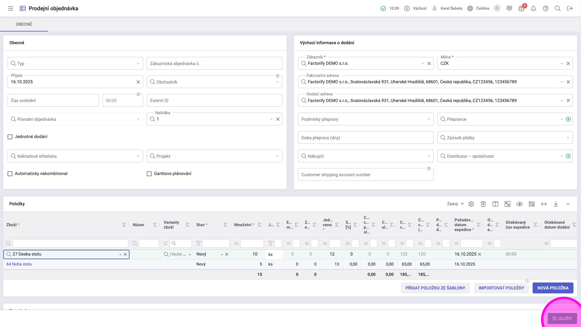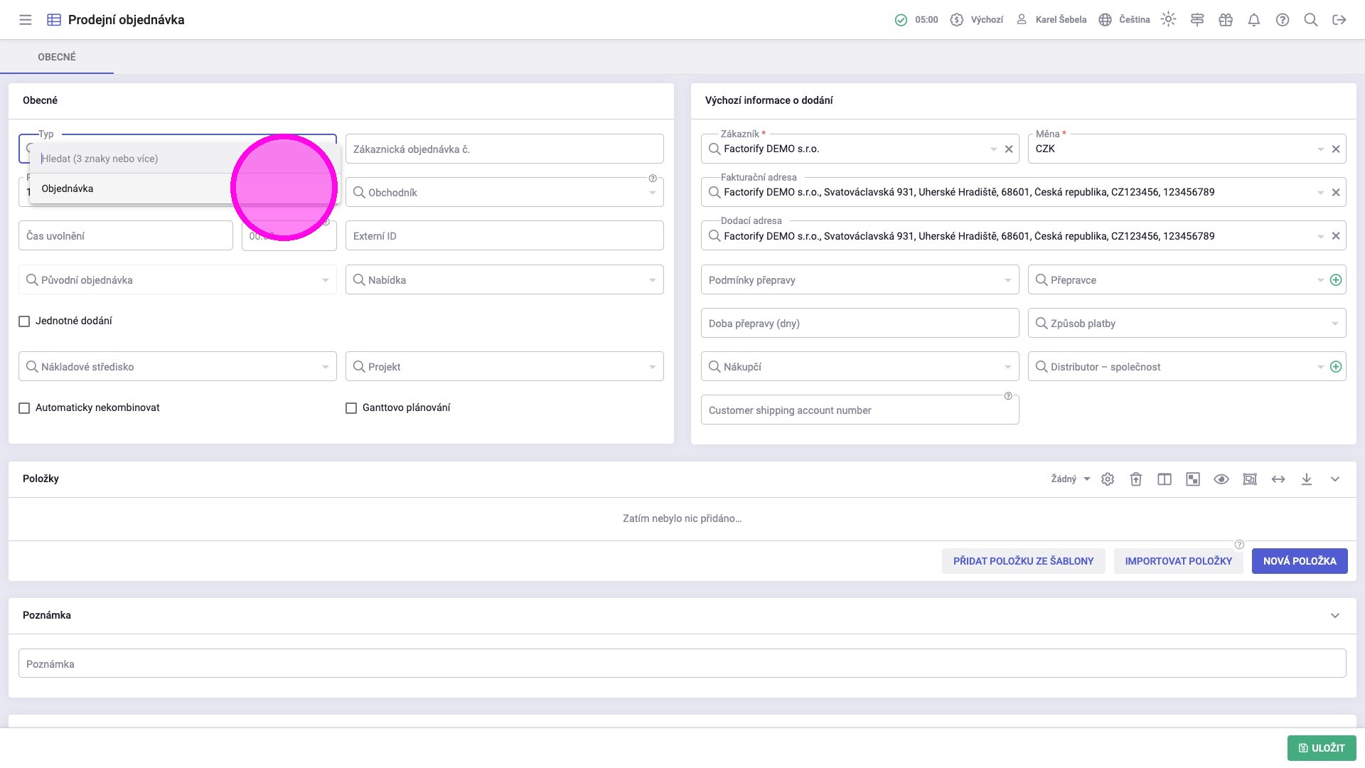 🎦 Tvorba prodejní objednávky | poslední úprava - 02.08.2023