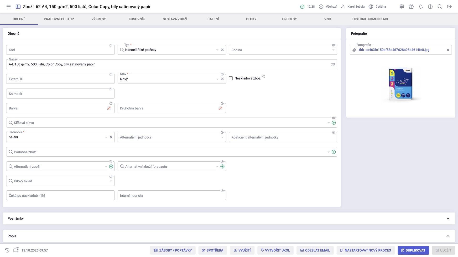 Uvolněno do výroby - Po tom, co technolog doplní k položce technologický postup, přepne ji do tohoto stavu. Nebo sem byla přepnuta automaticky.