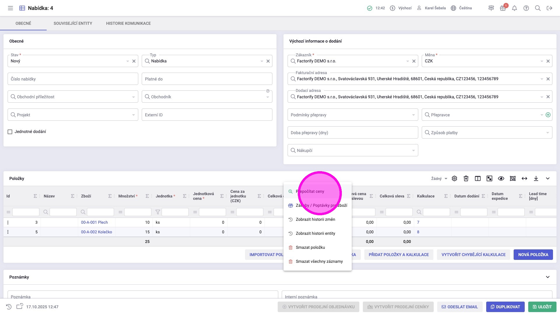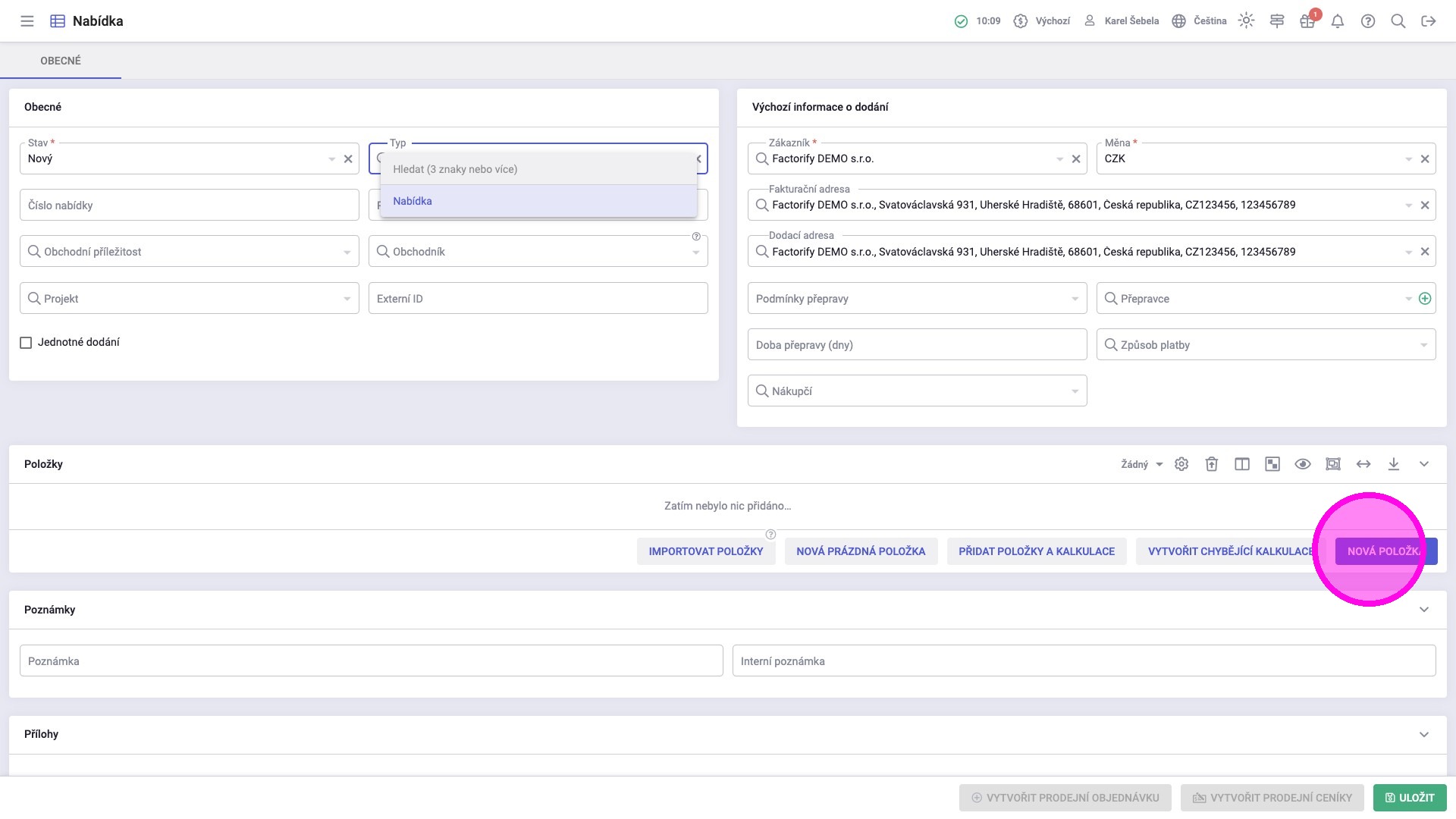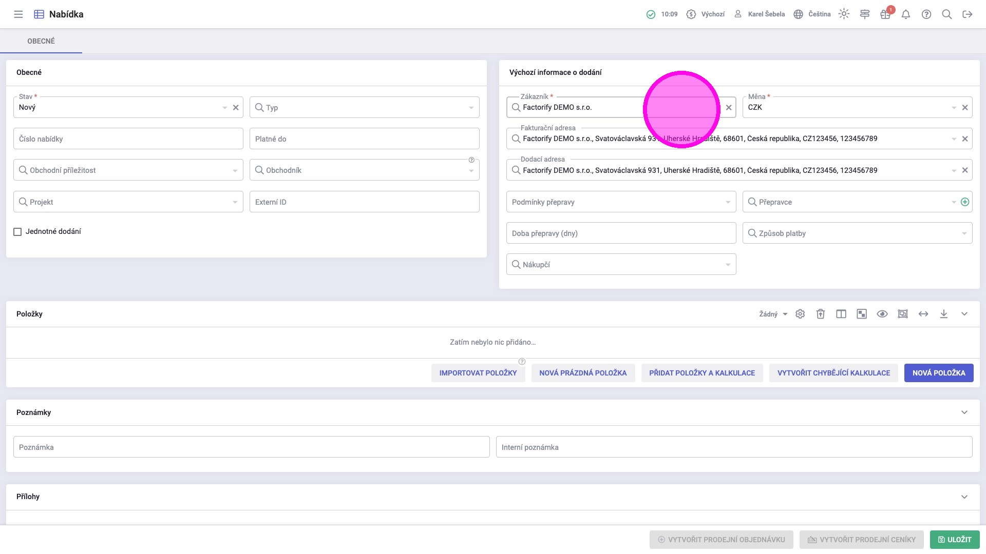 7. Všechny známé informace o zákazníkovi se do nabídky přenesou.