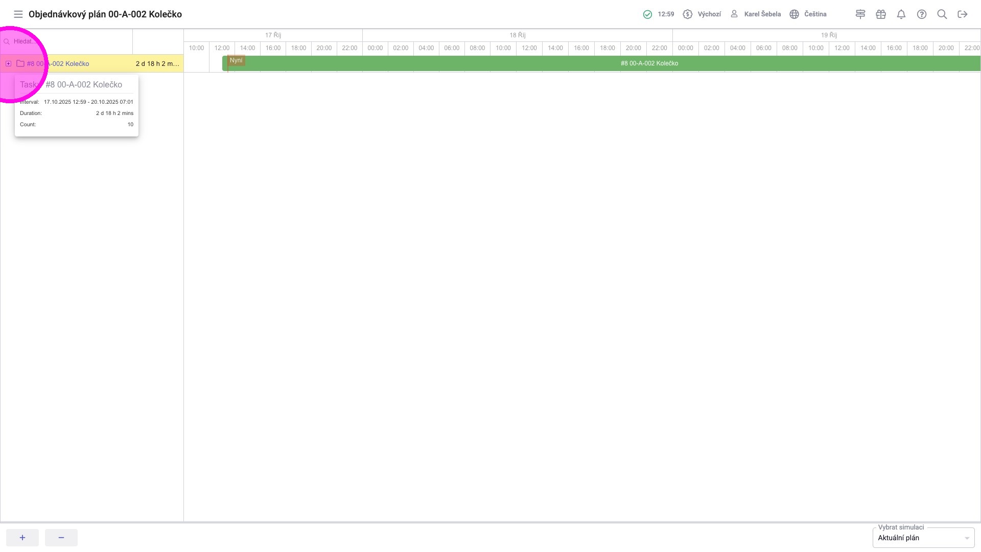 6. Kliknout na položku pro zobrazení konkrétního Ganttova diagramu specifické dávky.