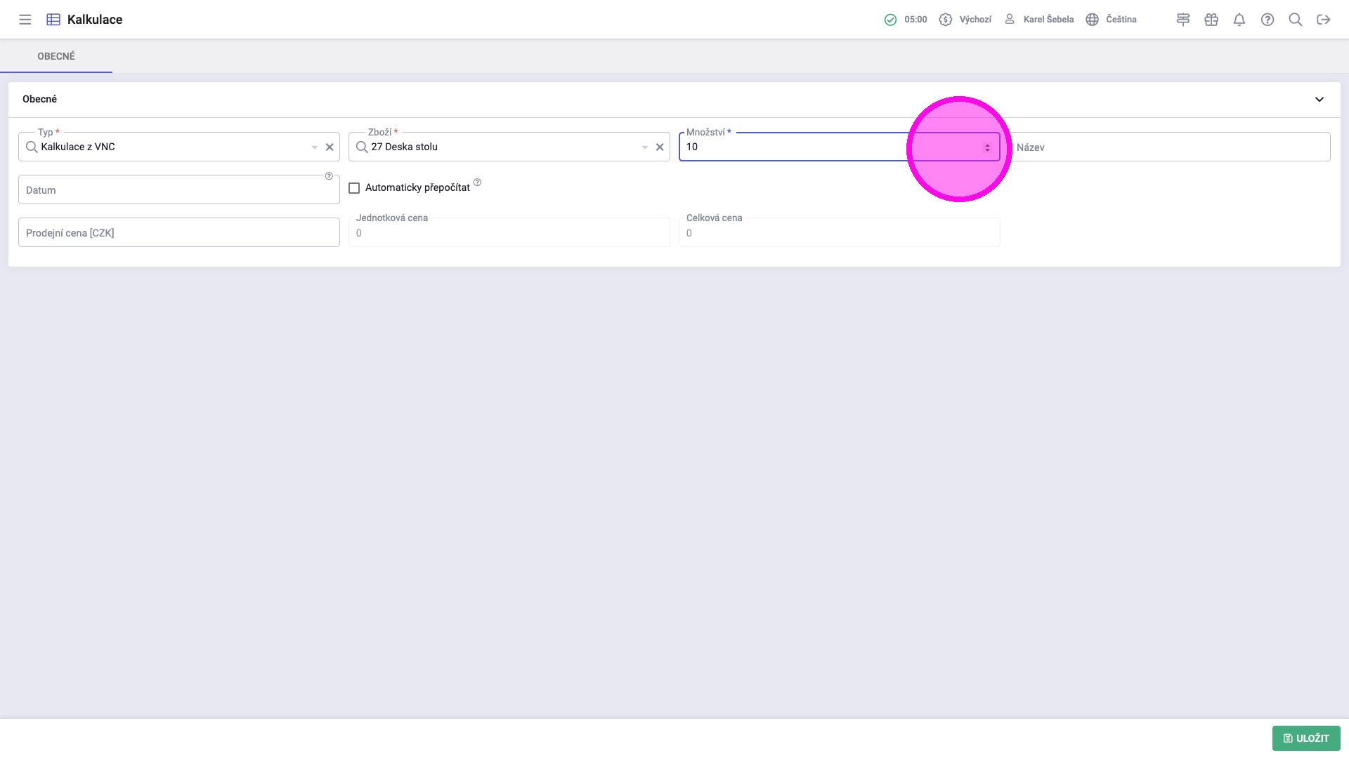 TIP: Pokud chcete počítat různá množství, založte si další kalkulace.