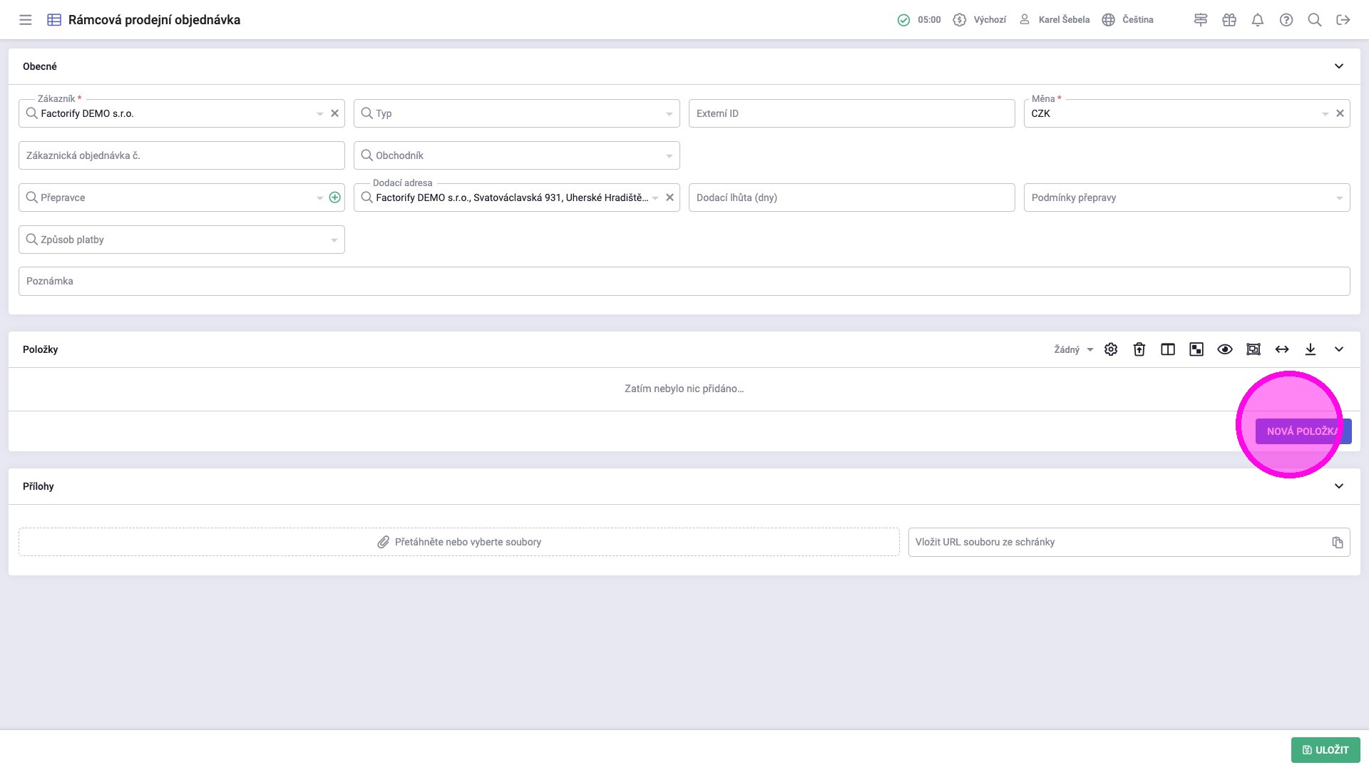 🎦 Tvorba rámcové prodejní objednávky | poslední úprava - 10.07.2023