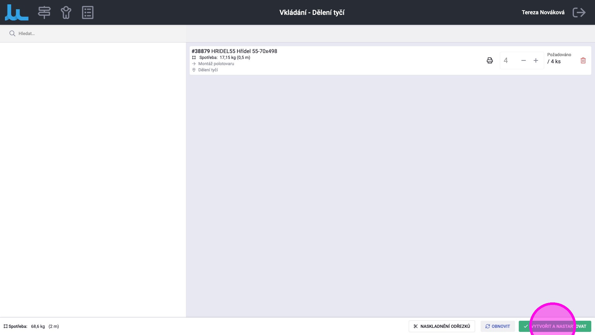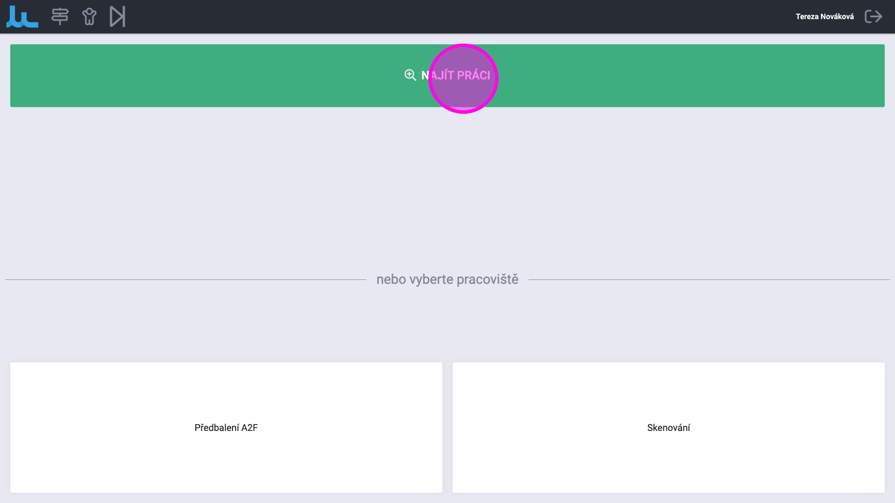 1. Na výrobní obrazovce kliknout v horní liště na ikonu panáčka.