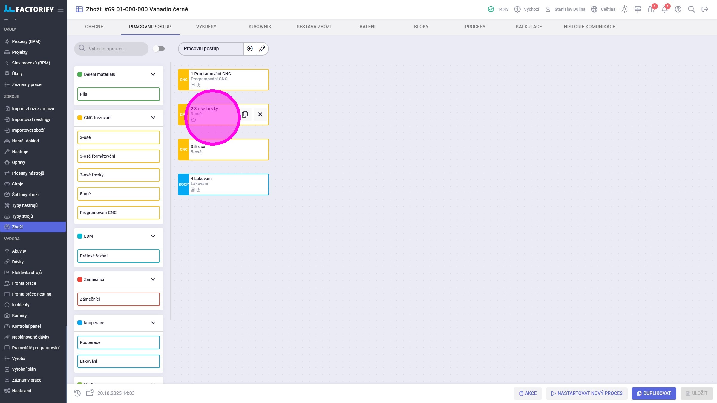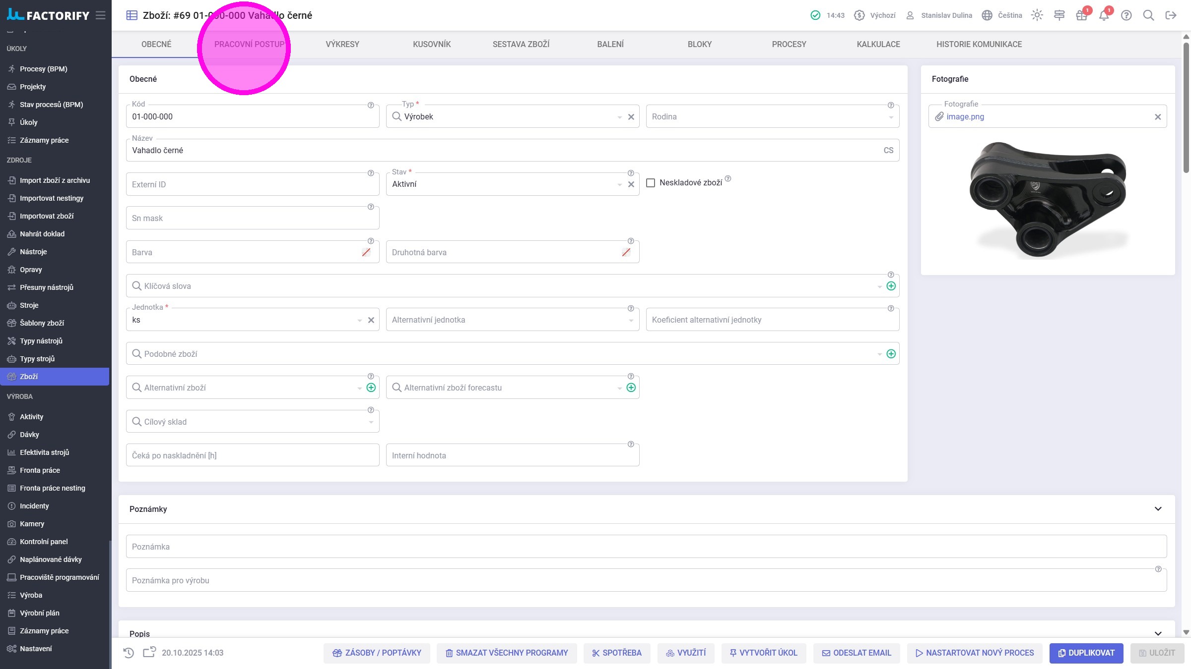 1. Na detailu zboží kliknout na záložku "Pracovní postup".