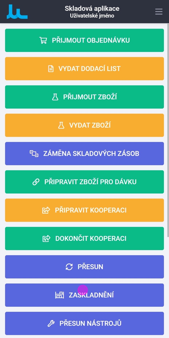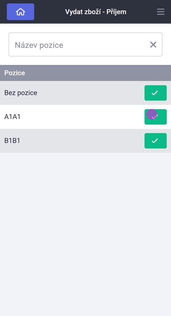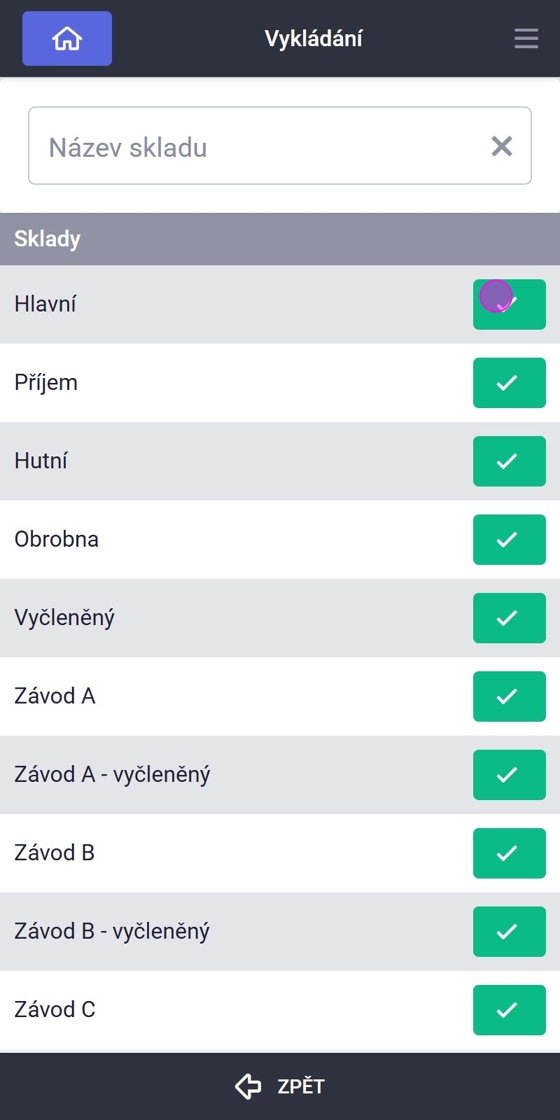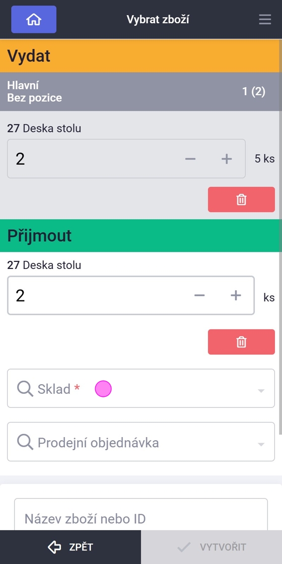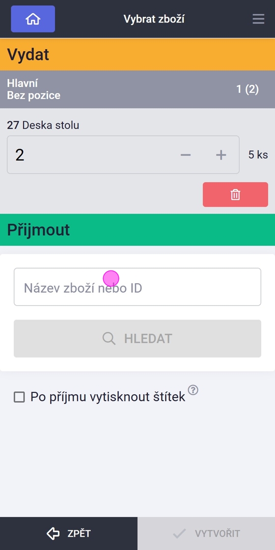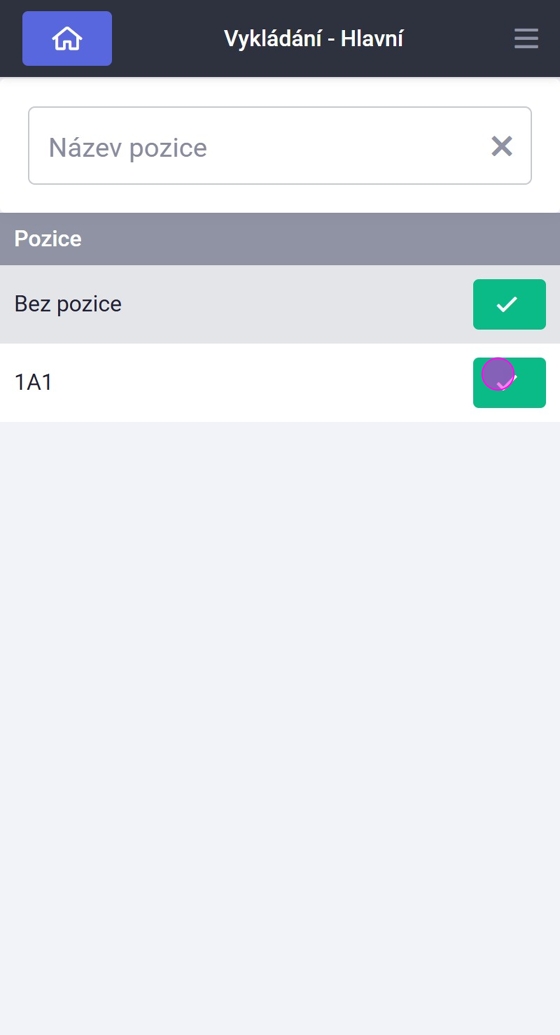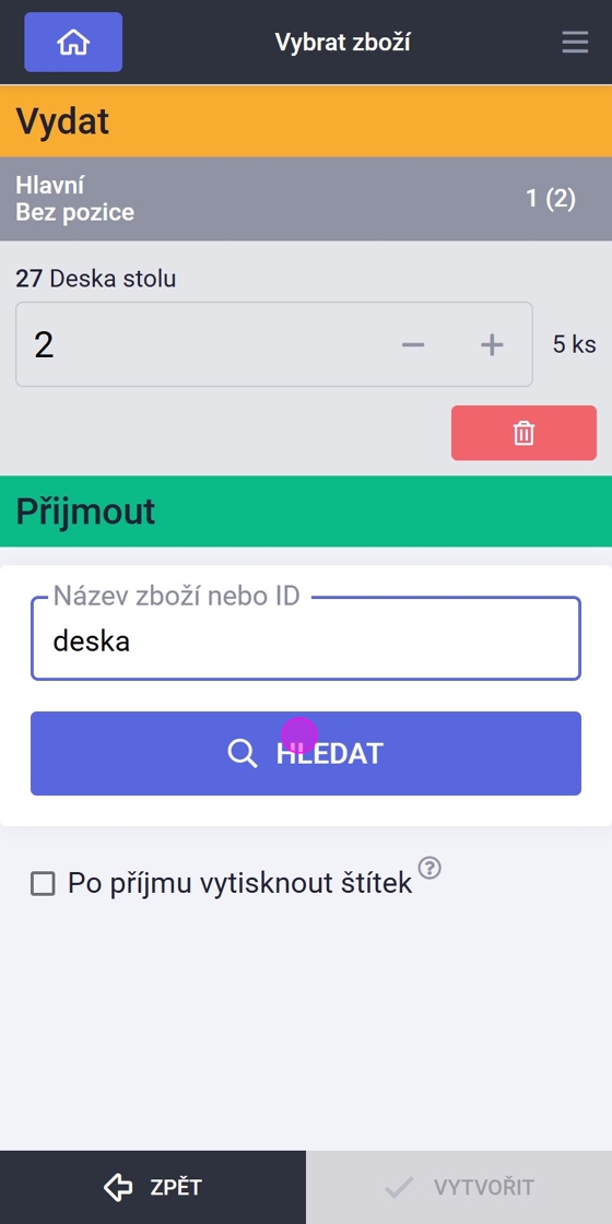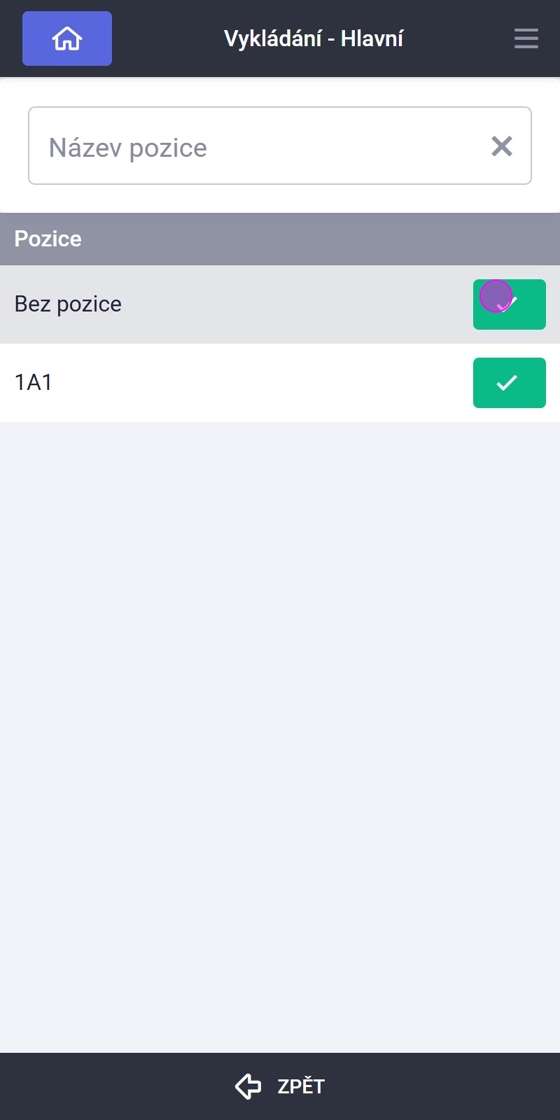 Je možné naskenovat štítek skladu nebo rovnou konkrétní skladové pozice.