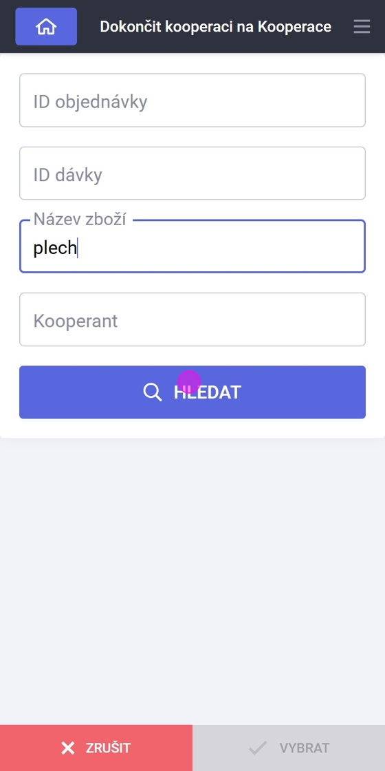Tip: Zobrazují se dávky, které jsou v plánu kooperací ve stavu přivézt, tj. pracovník kooperace u nich kliknul na "Poslat do kooperace".
