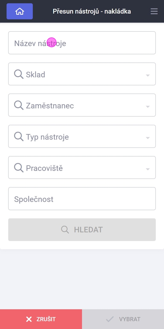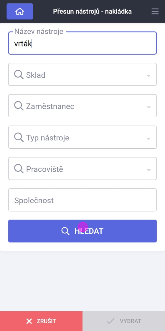 Lze rovnou naskenovat štítek nástroje, čímž se přímo vybere, nebo naskenovat štítek sladu, skladové pozice a zaměstnance pro rychlé zafiltrování.