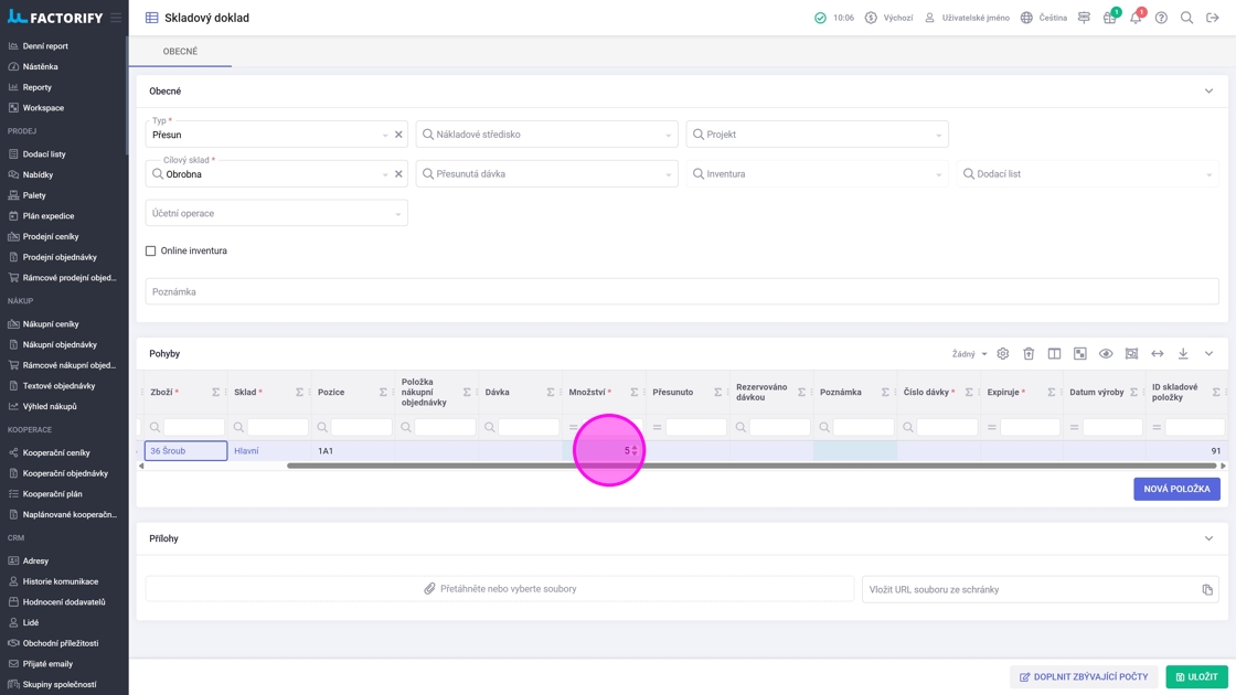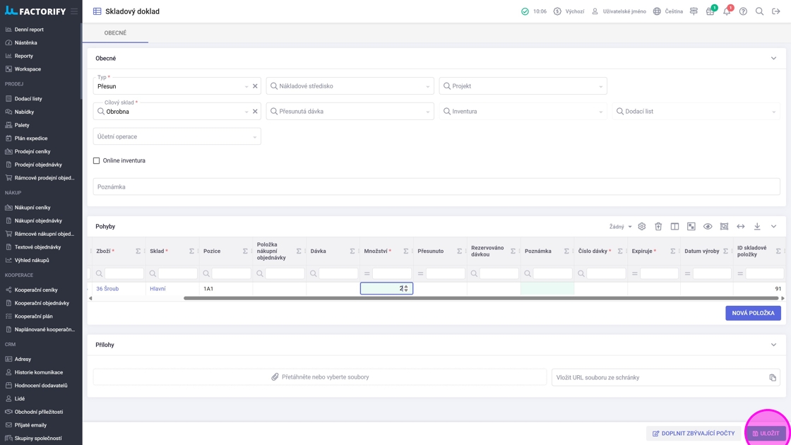 Dokončením tohoto procesu vznikne skladový doklad typu přesun.