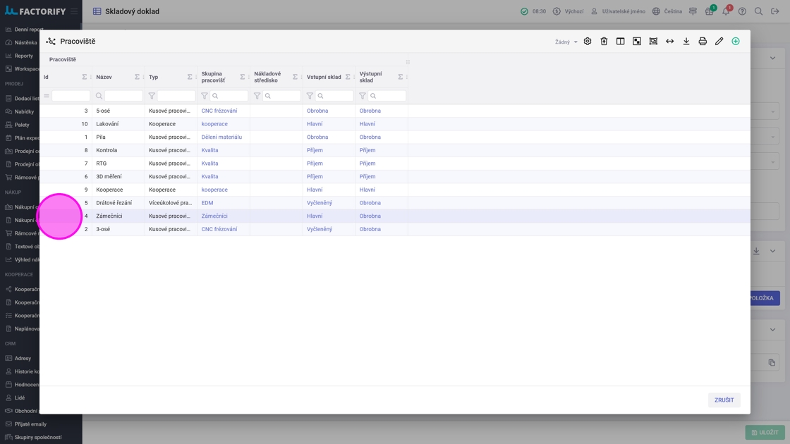 9. Vybrat konkrétní pracoviště "Zámečníci".