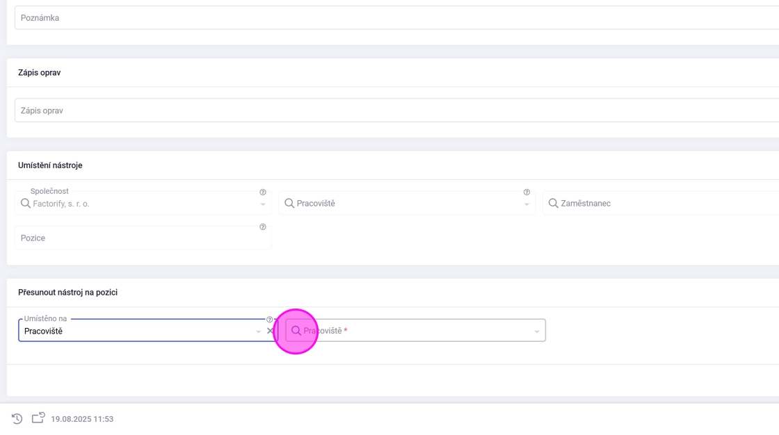 2. Rozkliknout pole "Umístěno na" v sekci "Přesunout nástroj na pozici".
