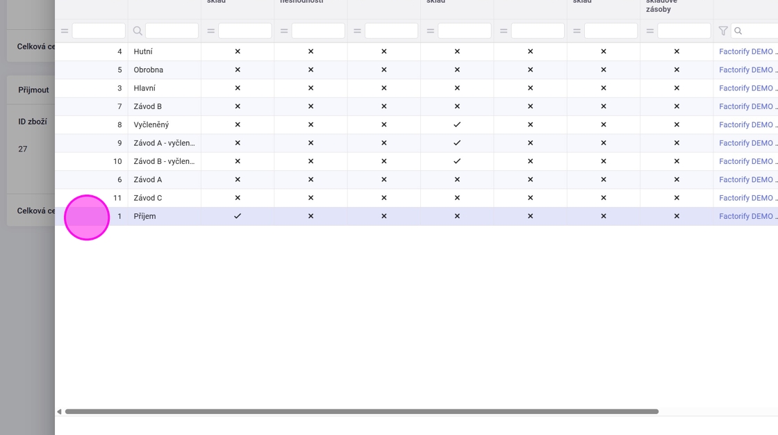 Tip: Systém automaticky zvýrazňuje sklady, na které se mají dle vstupního skladu pracoviště vyložit nějaké položky.