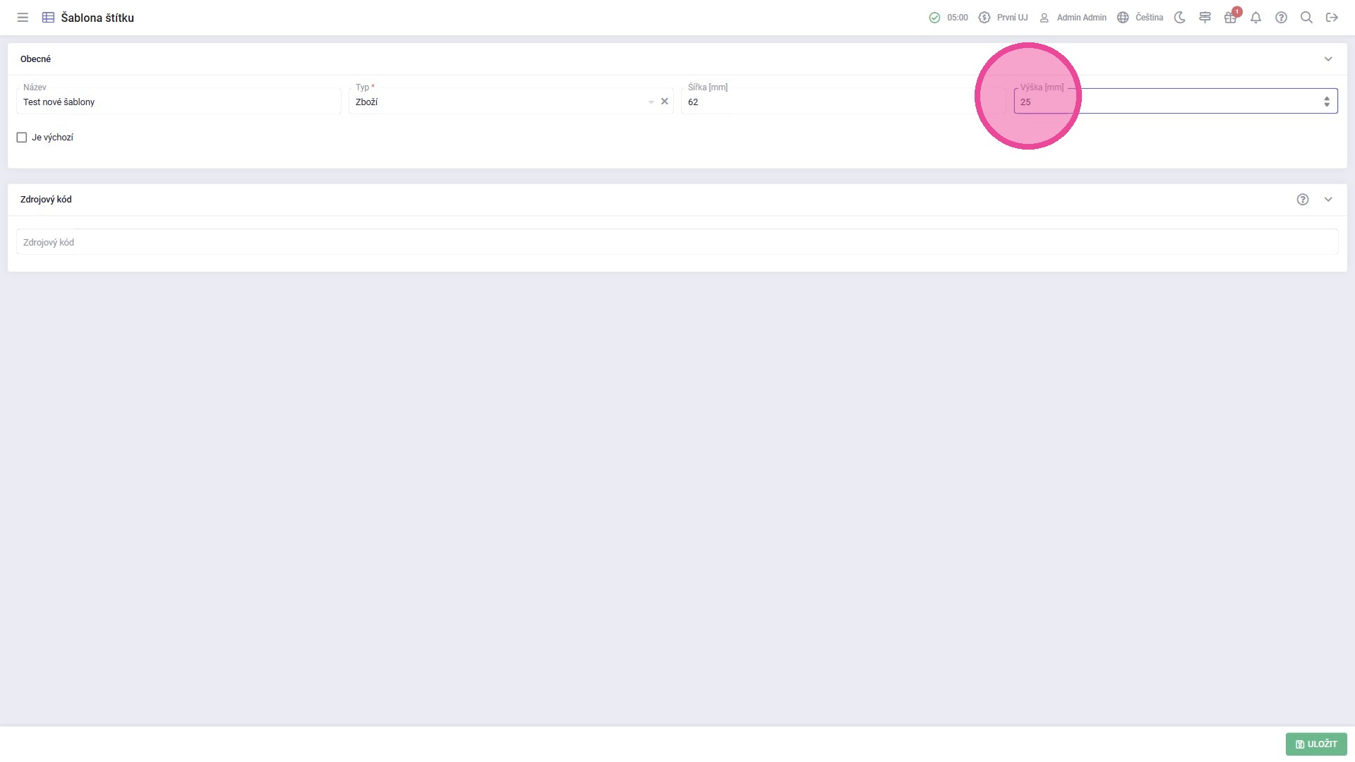 4. Nastavit šířku a výšku štítku, který se bude skrze tuto šablonu štítku tisknout.