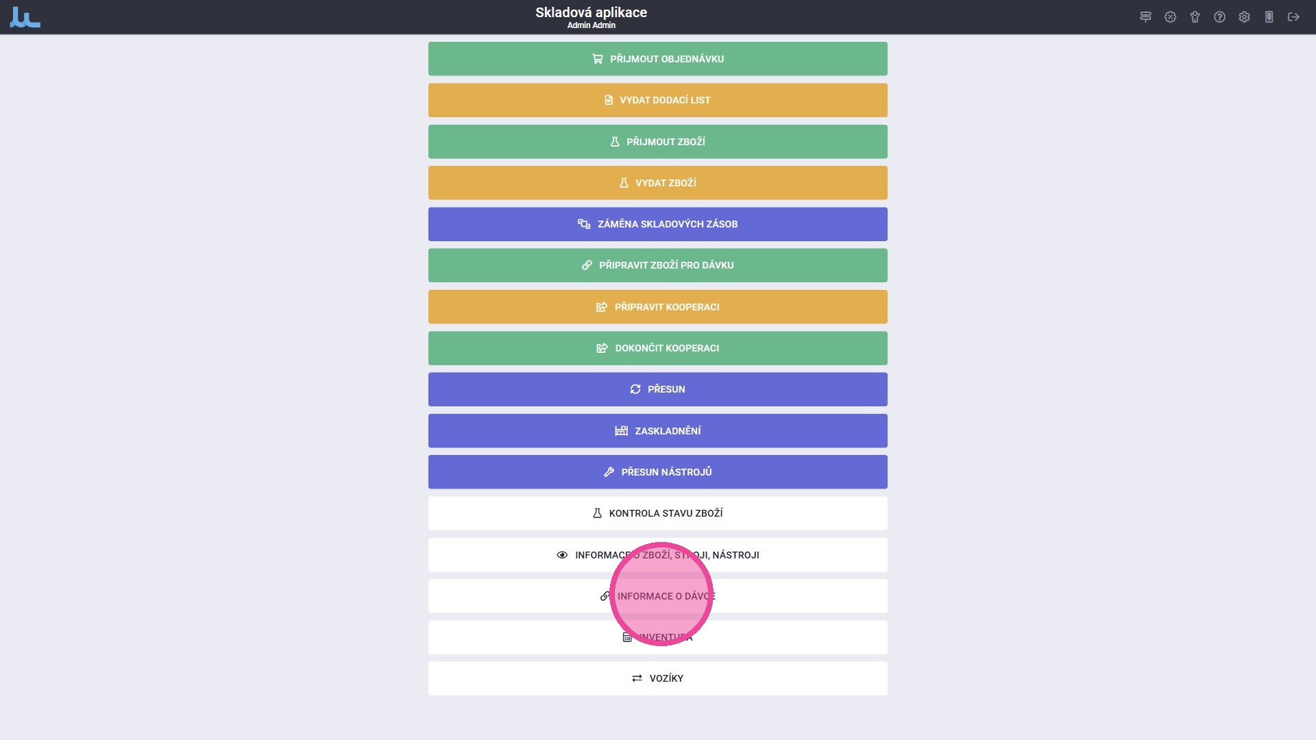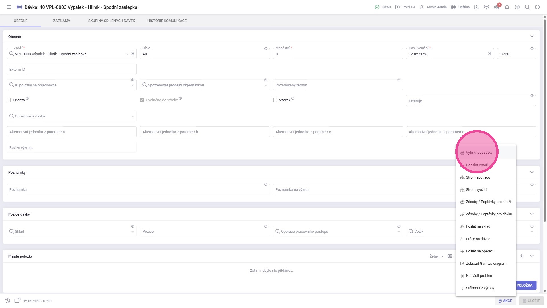 9. Další možností, odkud se dá vytisknout štítek, je "Informace o dávce".