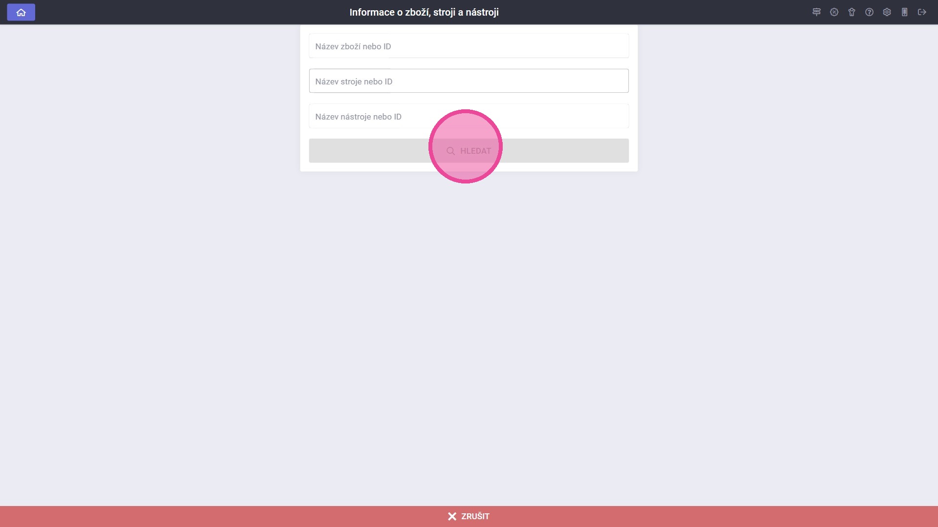 6. Zadat ID Zboží, Stroje, nebo Nástroje, pro který chci vytisknout štítek. Poté kliknout na "Hledat".