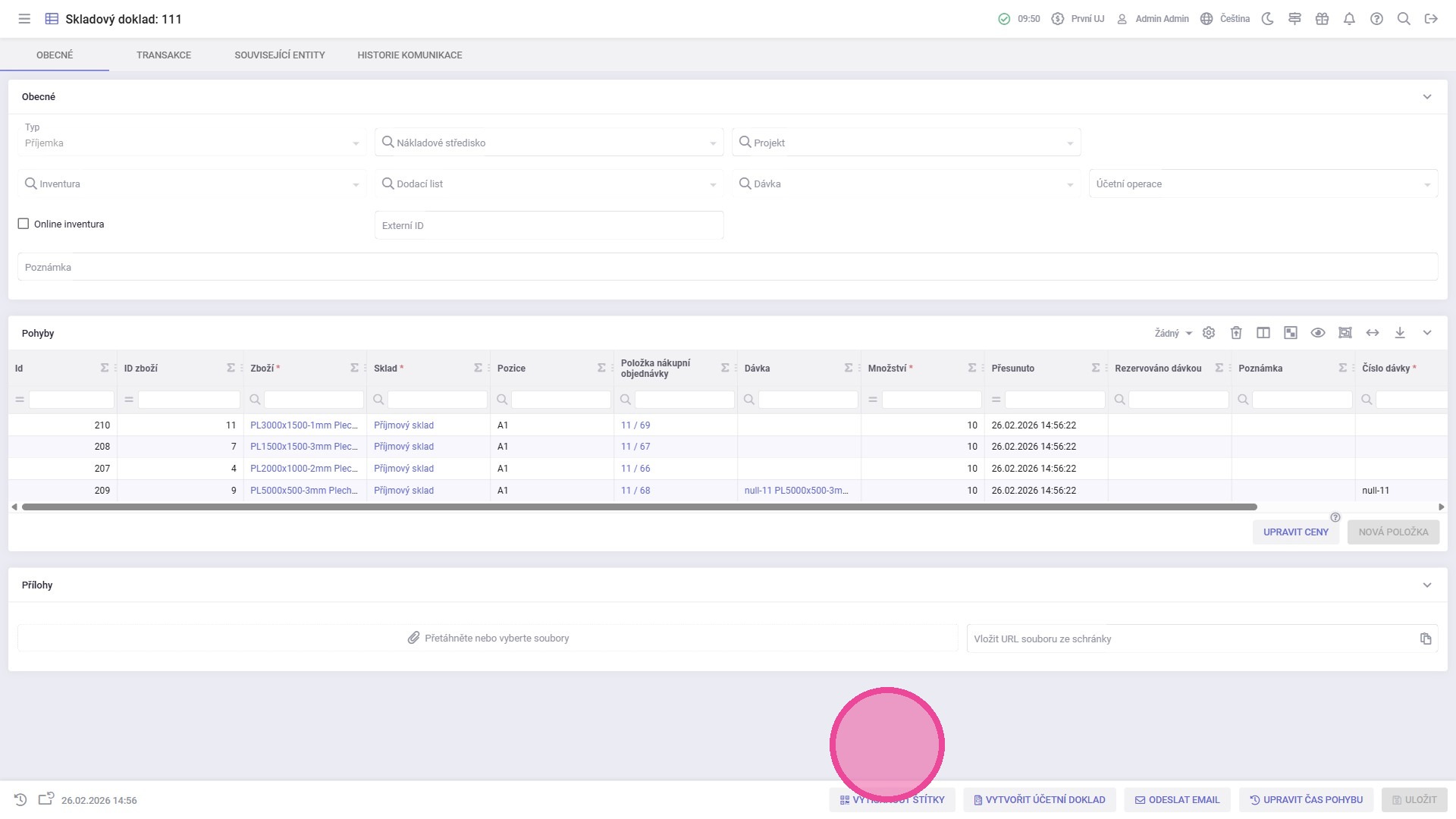 13. Další možností, kdy se dají ze Skladové aplikace tisknout štítky, je při procesu přijímání nákupní objednávky. Při vybrání možnosti "Po příjmu vytisknout štítek" se při dokončení přijímání nákupní objednávky vytisknou štítky pro přijímané Zboží v uživatelem specifikovaném množství.