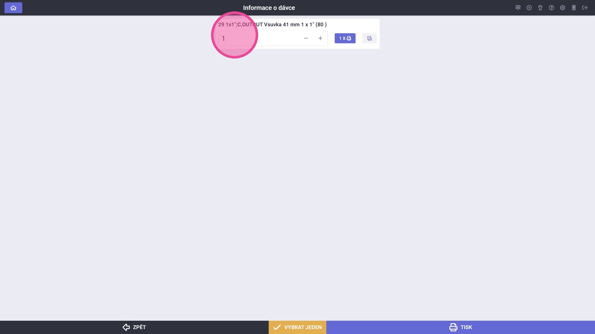 8. Specifikovat, kolik štítků chci vytisknout, a znovu kliknout na tlačítko "Tisk".