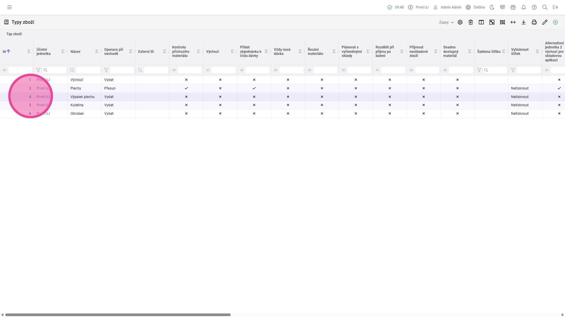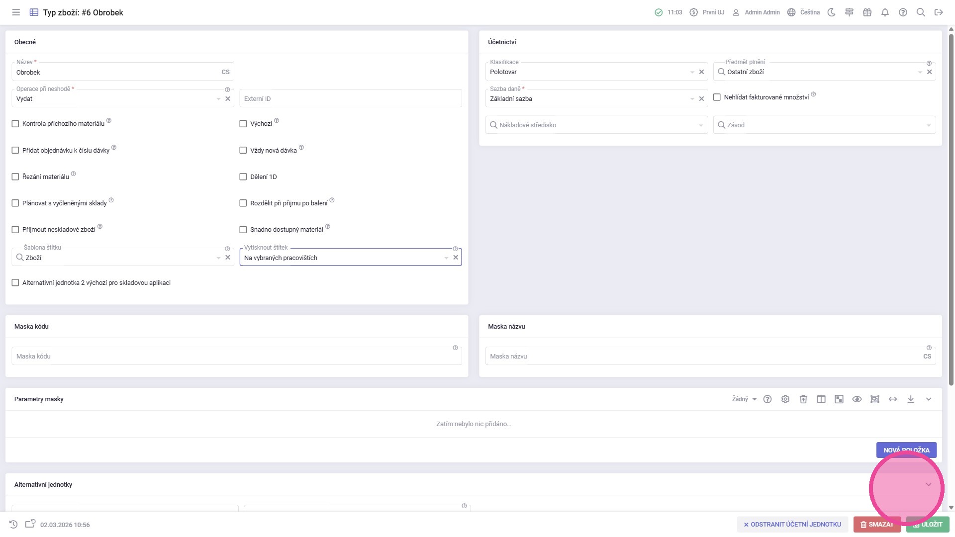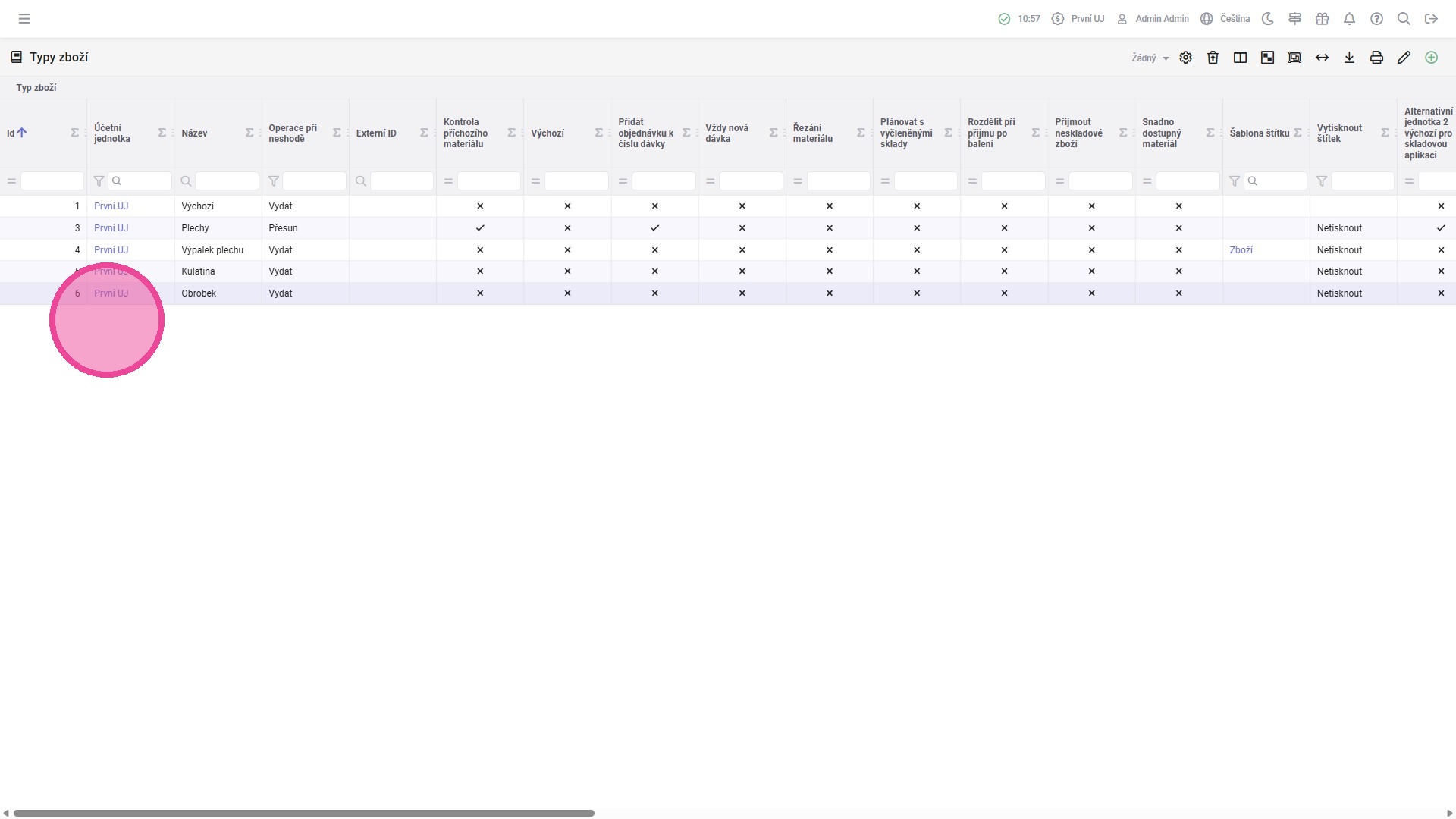 21. Po nastavení pracoviště je potřebné upravit nastavení Typu zboží, které bude pracovištěm procházet.