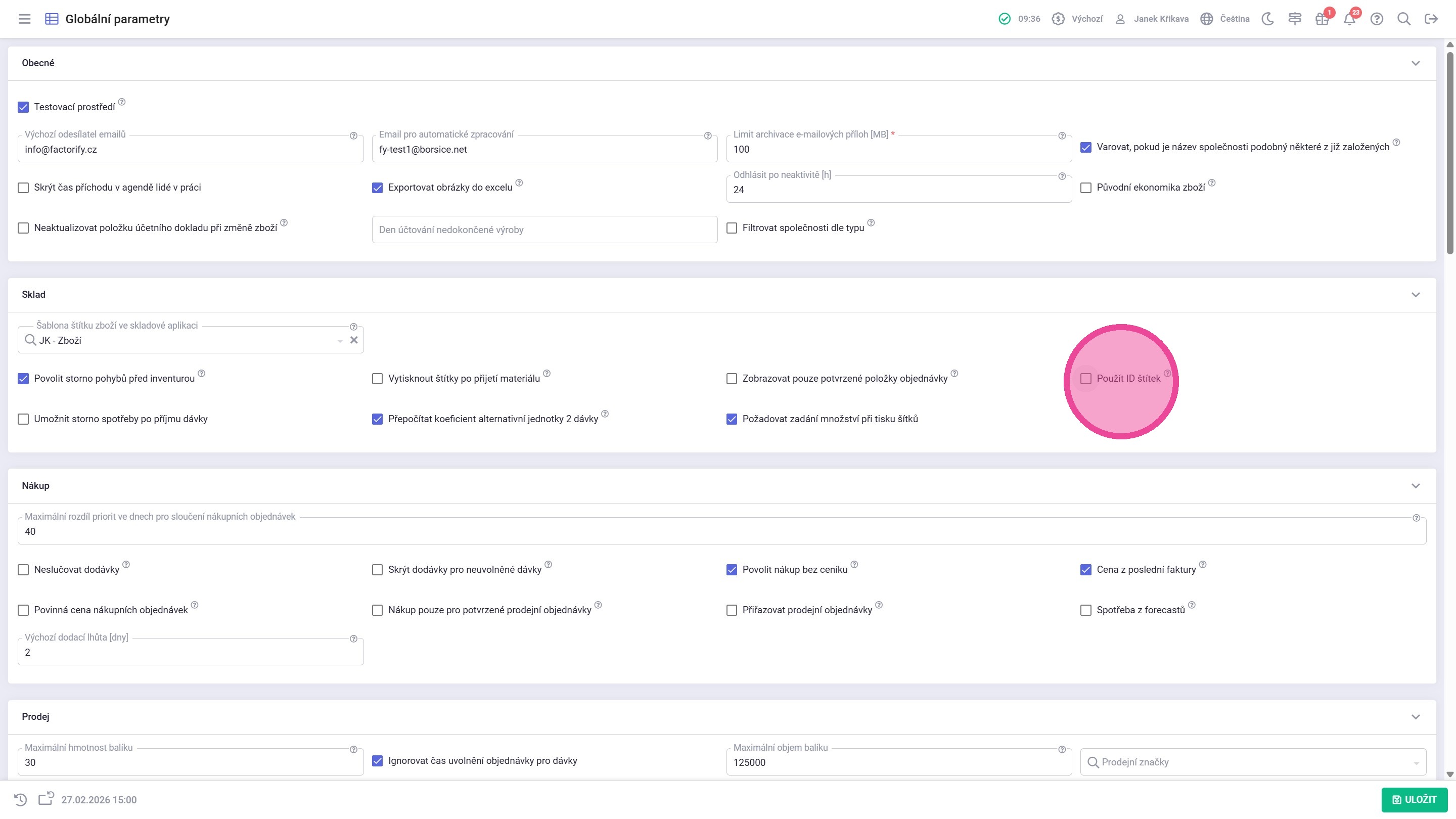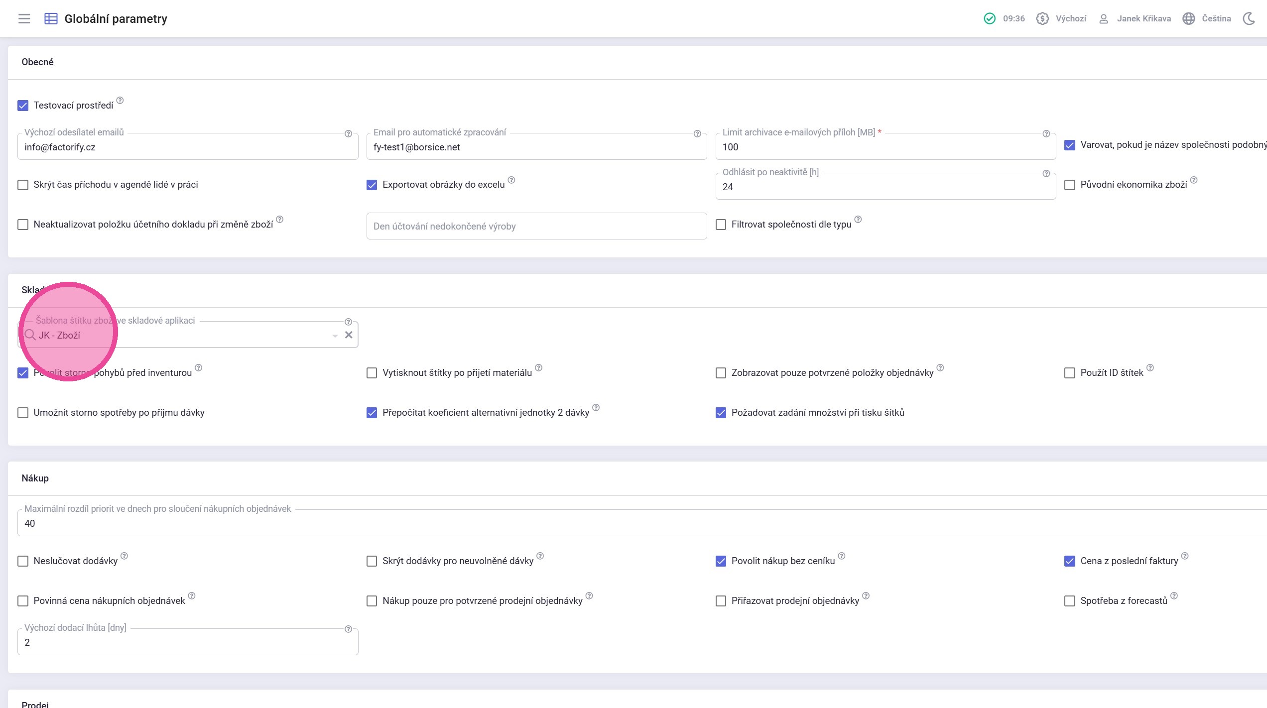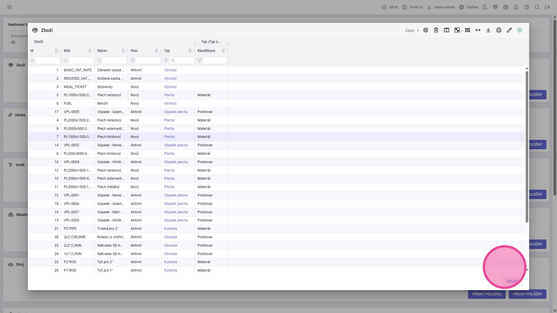 21. Po nastavení pracoviště je potřebné upravit nastavení Typu zboží, které bude pracovištěm procházet.