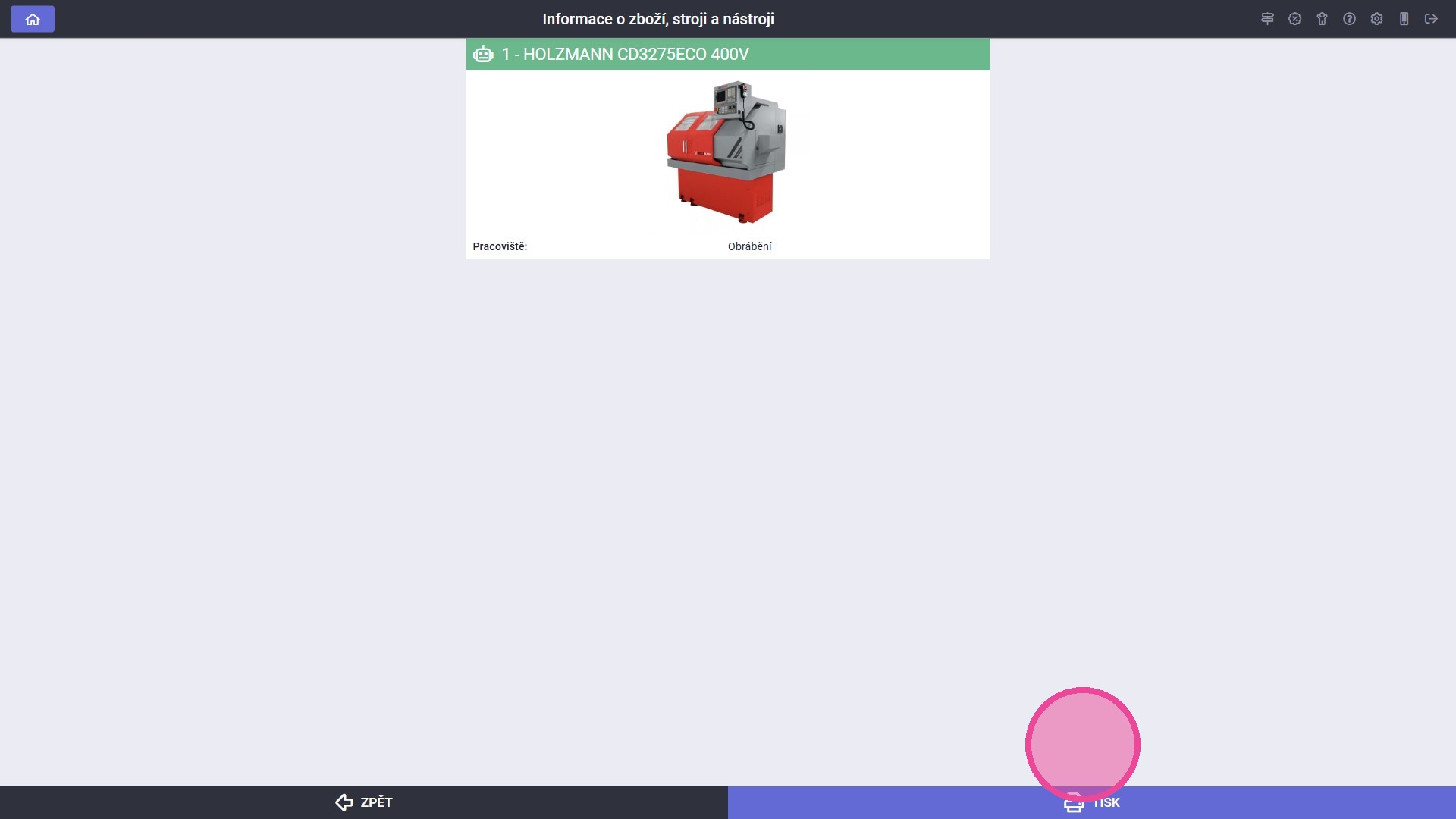 5. Pro tisk štítku Zboží, Stroje, nebo Nástroje kliknout na pole "Informace o Zboží, Stroji, Nástroji".