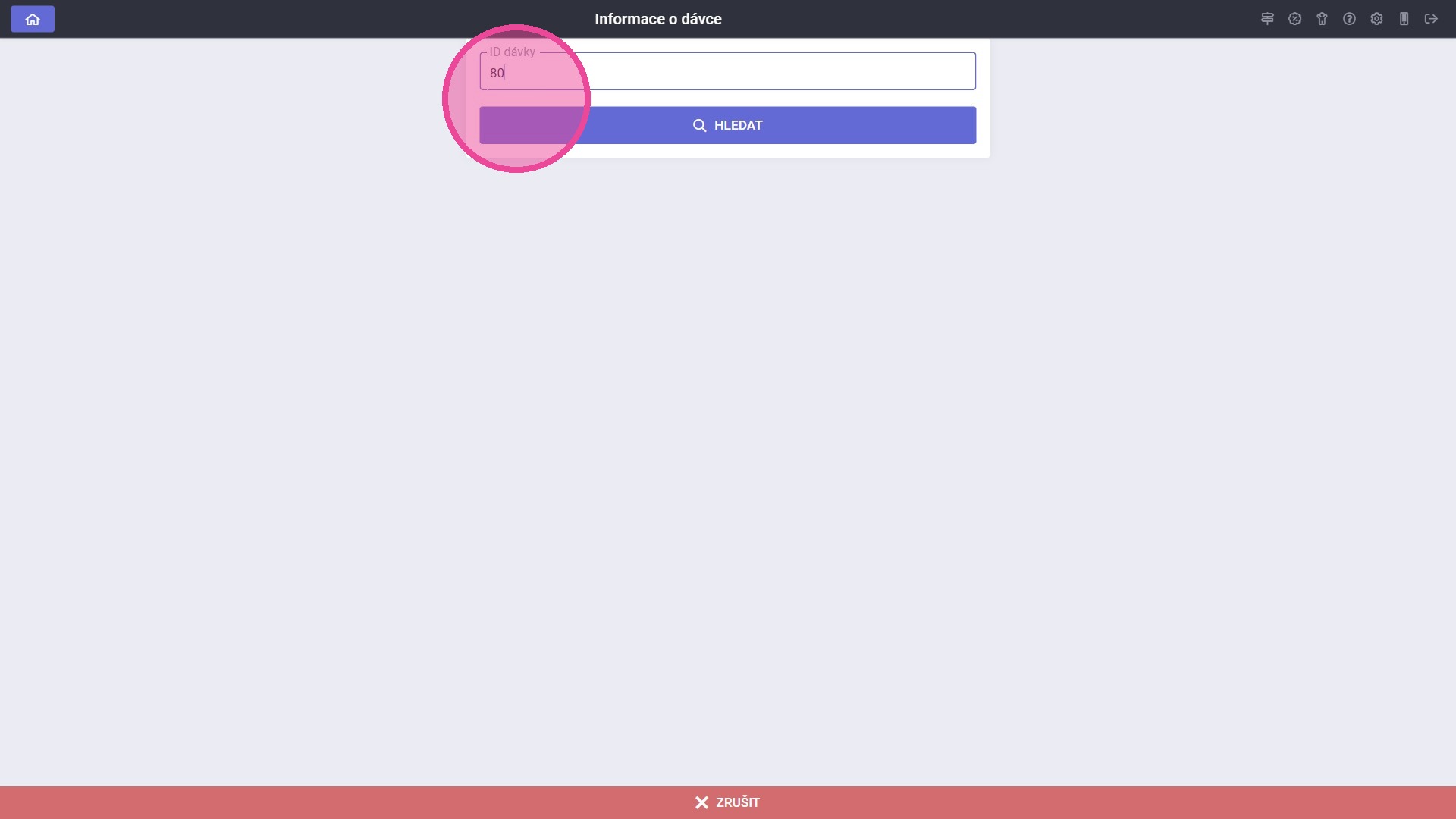 10. Zadat ID Dávky a kliknout na tlačítko "Hledat".