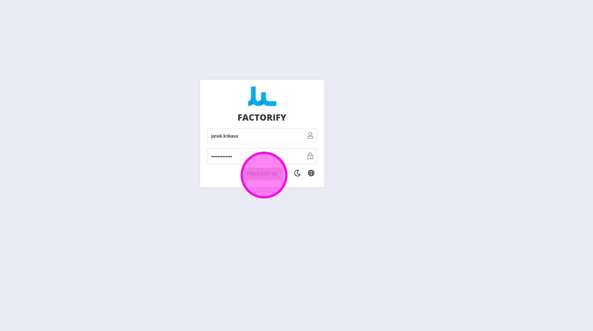 1. Otevřít Výrobní obrazovku a před přihlášením vložit do URL na konec odkazu "?workstationId={{workstation_id}}". Následně se přihlásit.