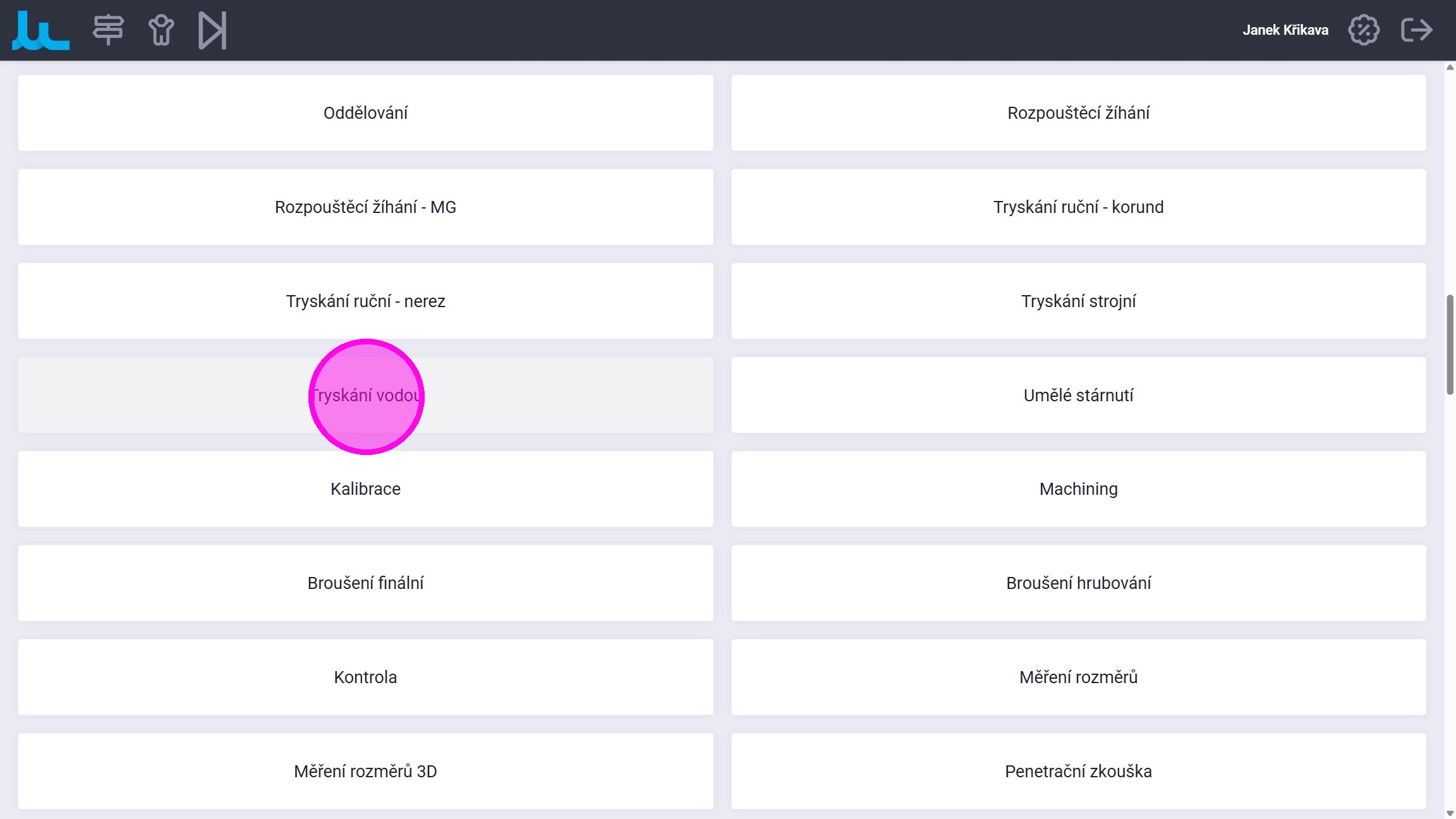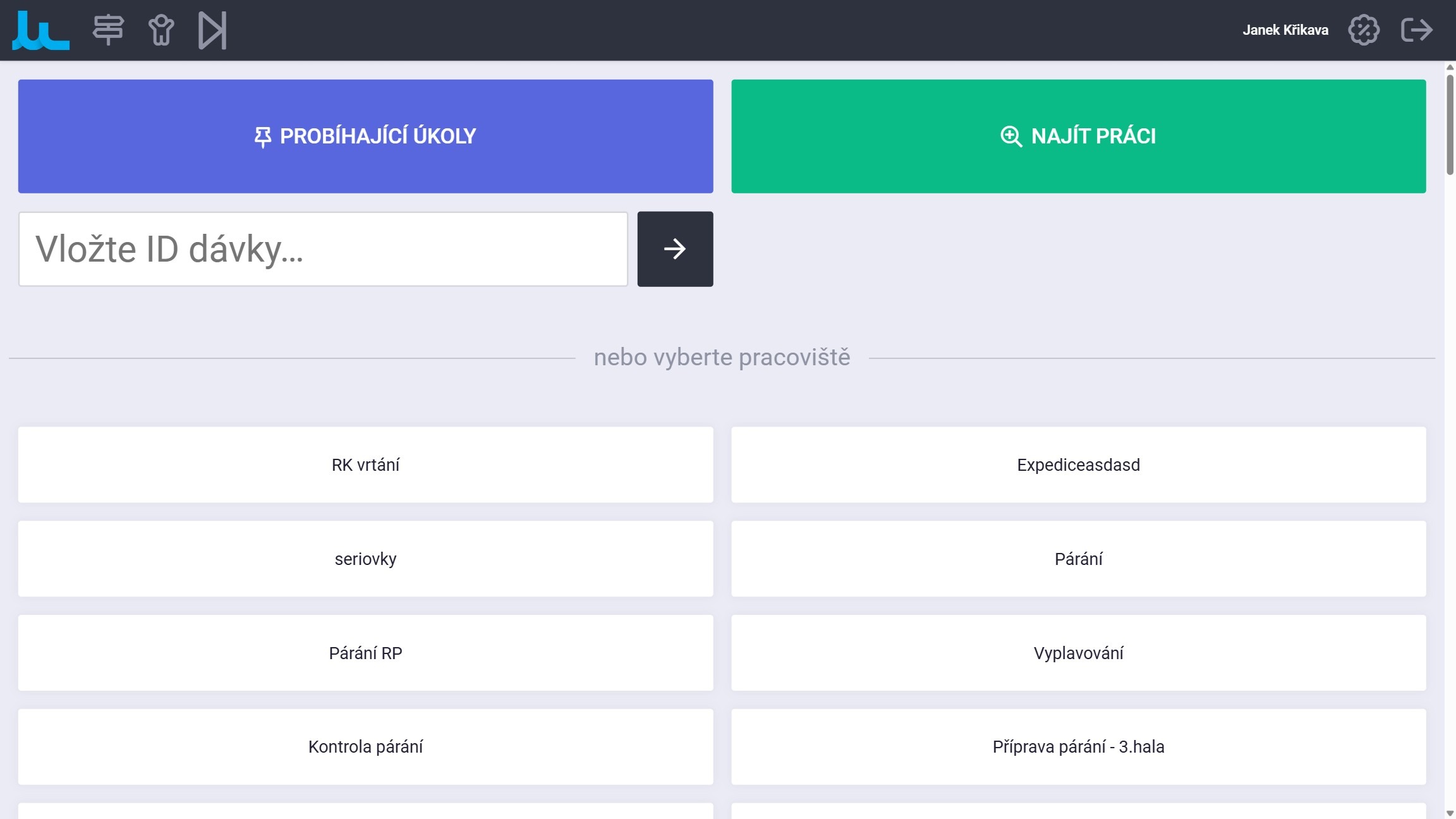 2. Po přihlášení byste neměli pozorovat změnu a zobrazí se všechna operátorovi dostupná Pracoviště. Pokračovat k výběru Pracoviště.