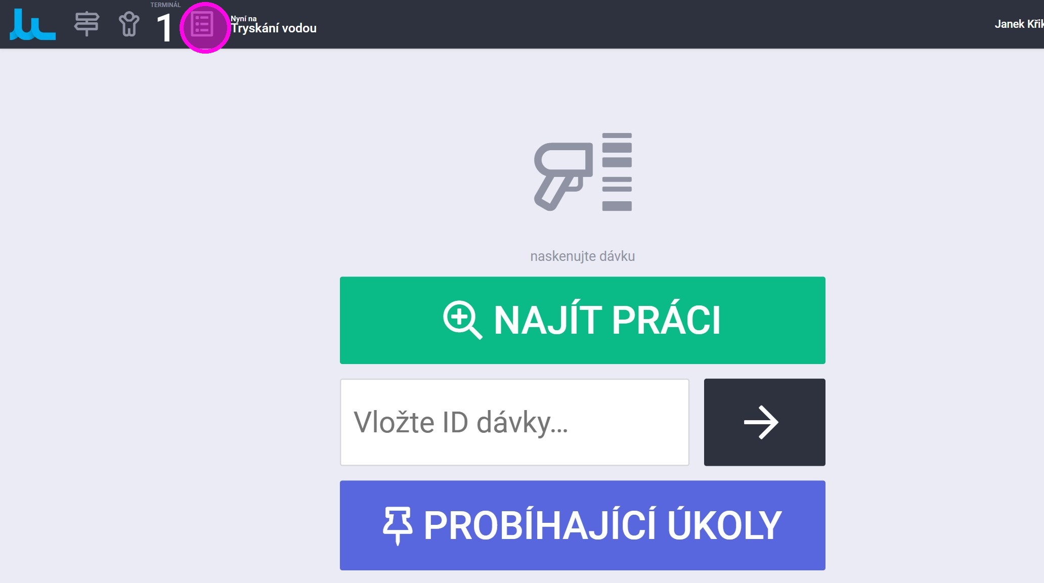 Tip: Pro odvázání zařízení od přiřazeného terminálu existují 2 způsoby. Prvním způsobem je smazání "Cache" souborů uložených v prohlížeči. Druhým způsobem je zadání následujícího textu za URL před přihlášením se na Výrobní obrazovku - "?workstationId=-1".