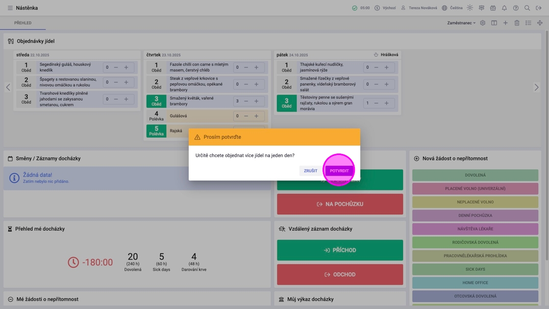 5. Zvýšení počtu jídel je třeba potvrdit.