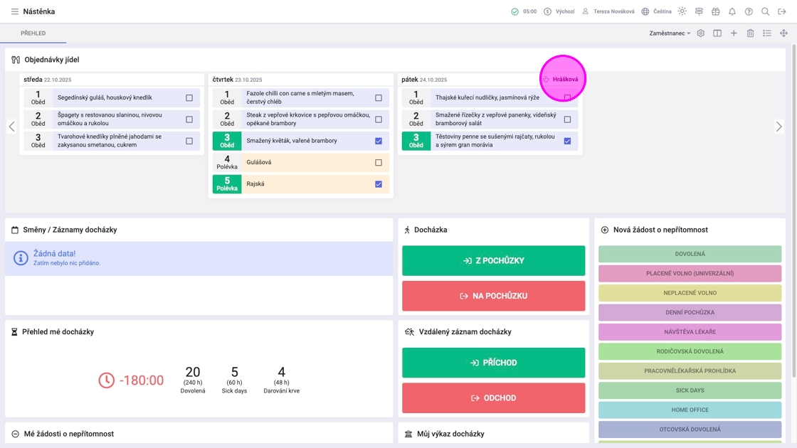 Tip: Zaznamenáním příchodu/odchodu dojde k automatickému odhlášení.