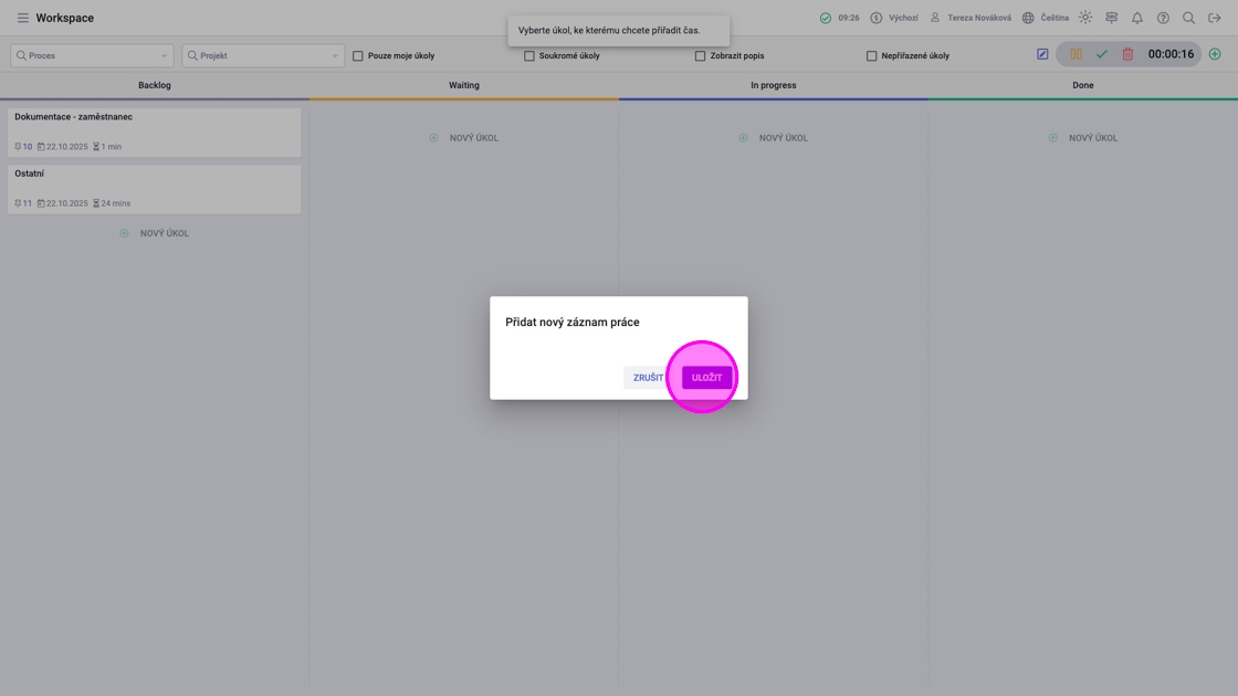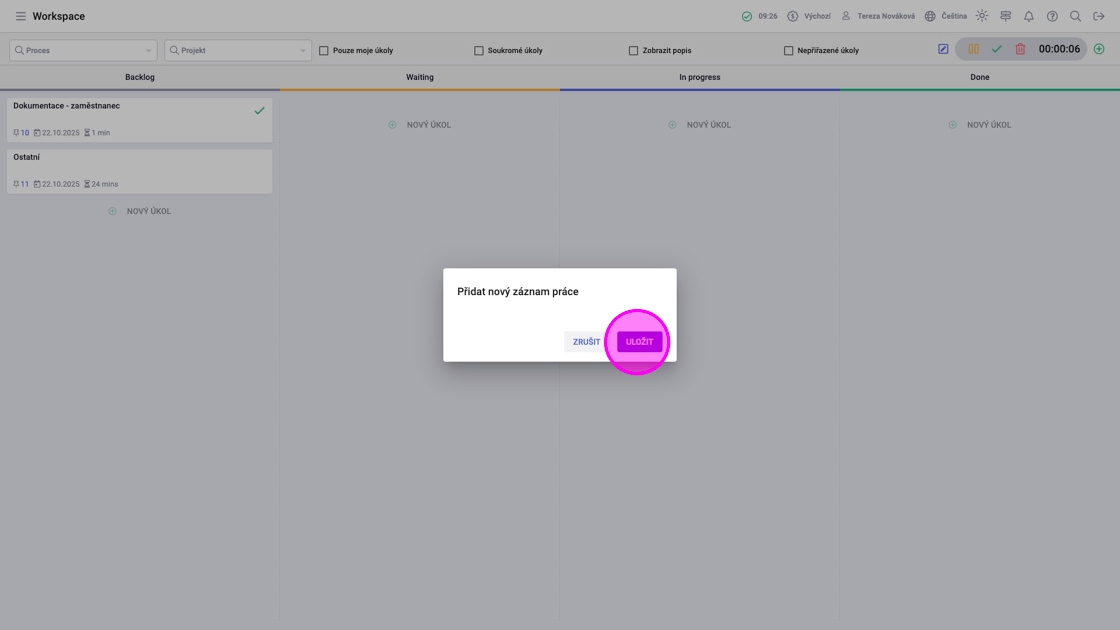 5. Po přidání všech záznamů práce kliknout na "Uložit".