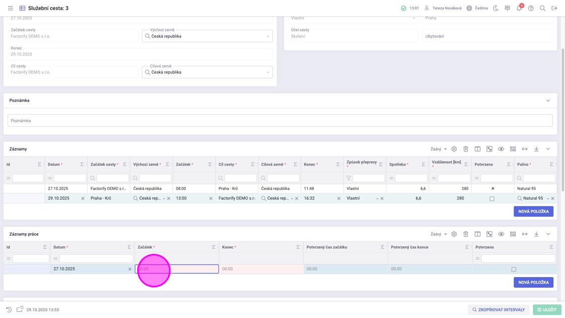 3. Vyplnit požadovaná pole a přidat záznamy práce.