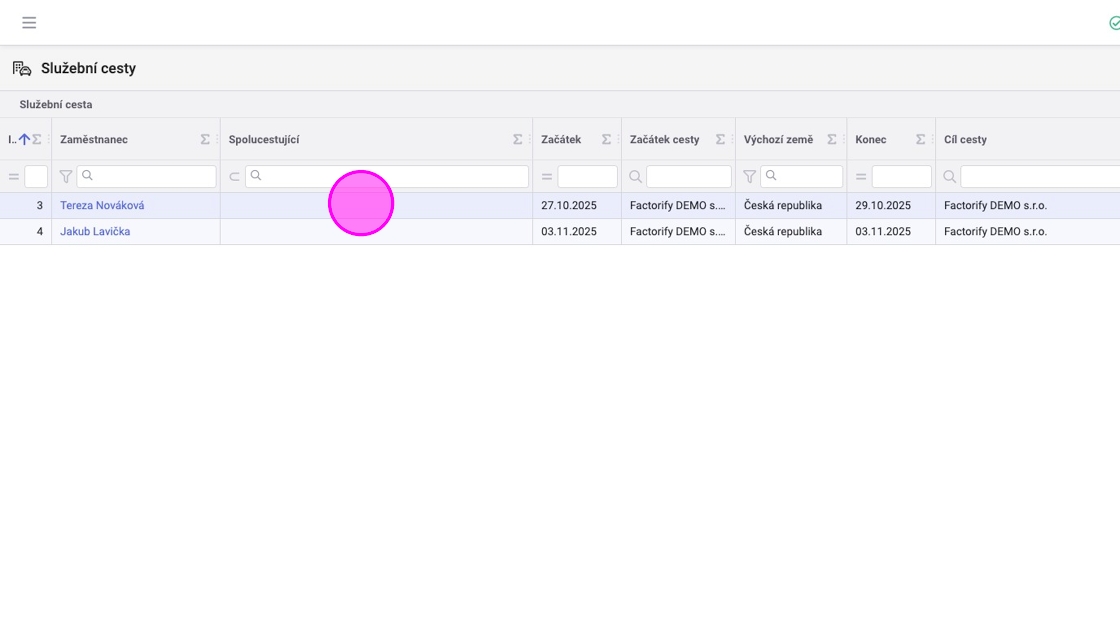 1. Na listu Služebních cest jsou vidět pouze cesty daného zaměstnance a jeho podřízených.